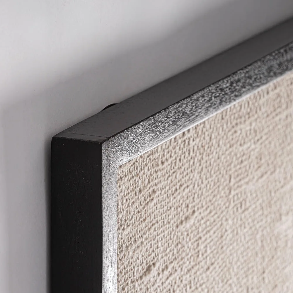 Cuadro Urzuri de estilo contemporáneo fabricado en yute en color tonos neutros combinado con algodón y madera de mango en color negro.
