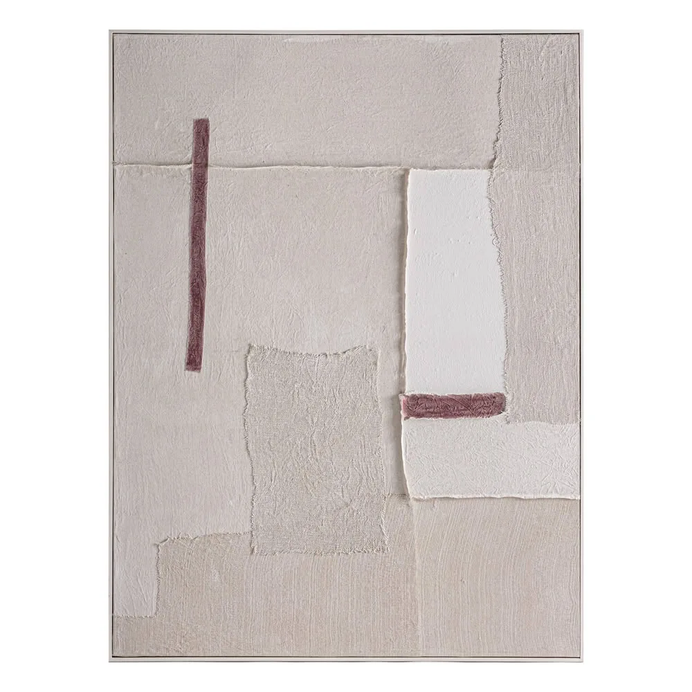 Cuadro Zilia de estilo contemporáneo fabricado en lienzo en color blanco roto combinado con madera de pino en color marrón. Ancho: 120cm , Fondo: 5cm , Alto: 160cm