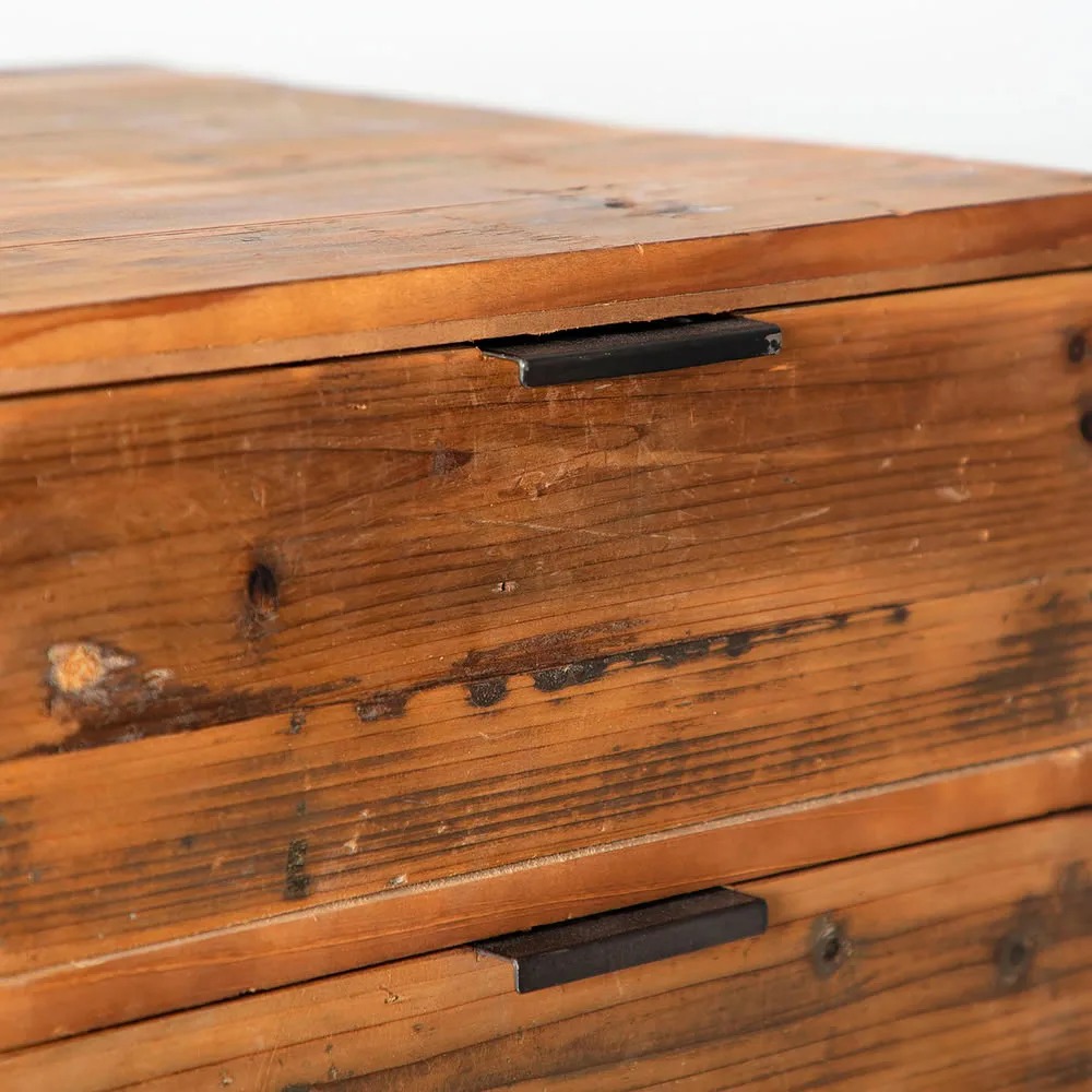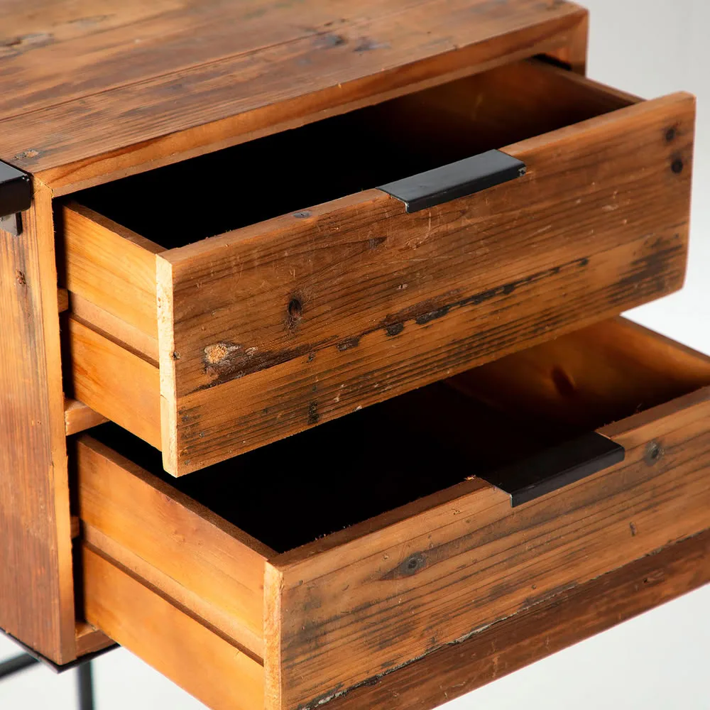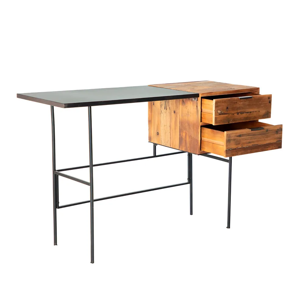Escritorio rectangular alles de estilo industrial, fabricado en hierro en color negro, combinado con madera de abeto en color marrón. Producto desmontable.