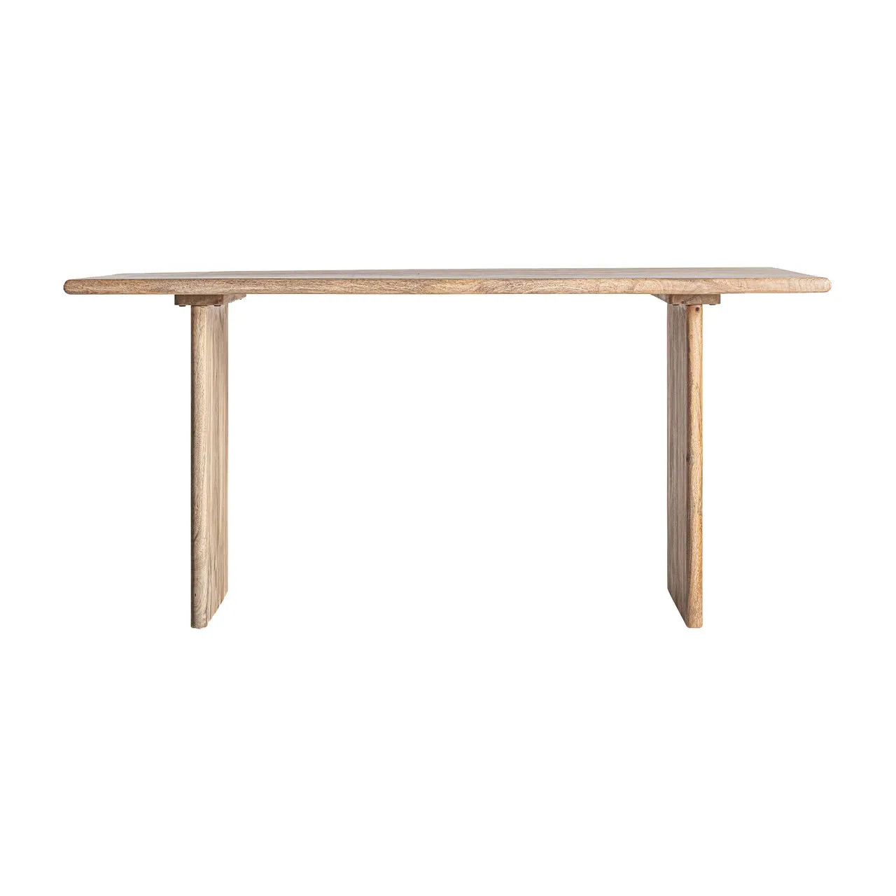 Fabricado artesanalmente en madera de mango en tono marrón, este escritorio de 160 × 80 × 77 cm combina líneas depuradas con materiales nobles, aportando calidez visual y una estructura resistente y duradera.