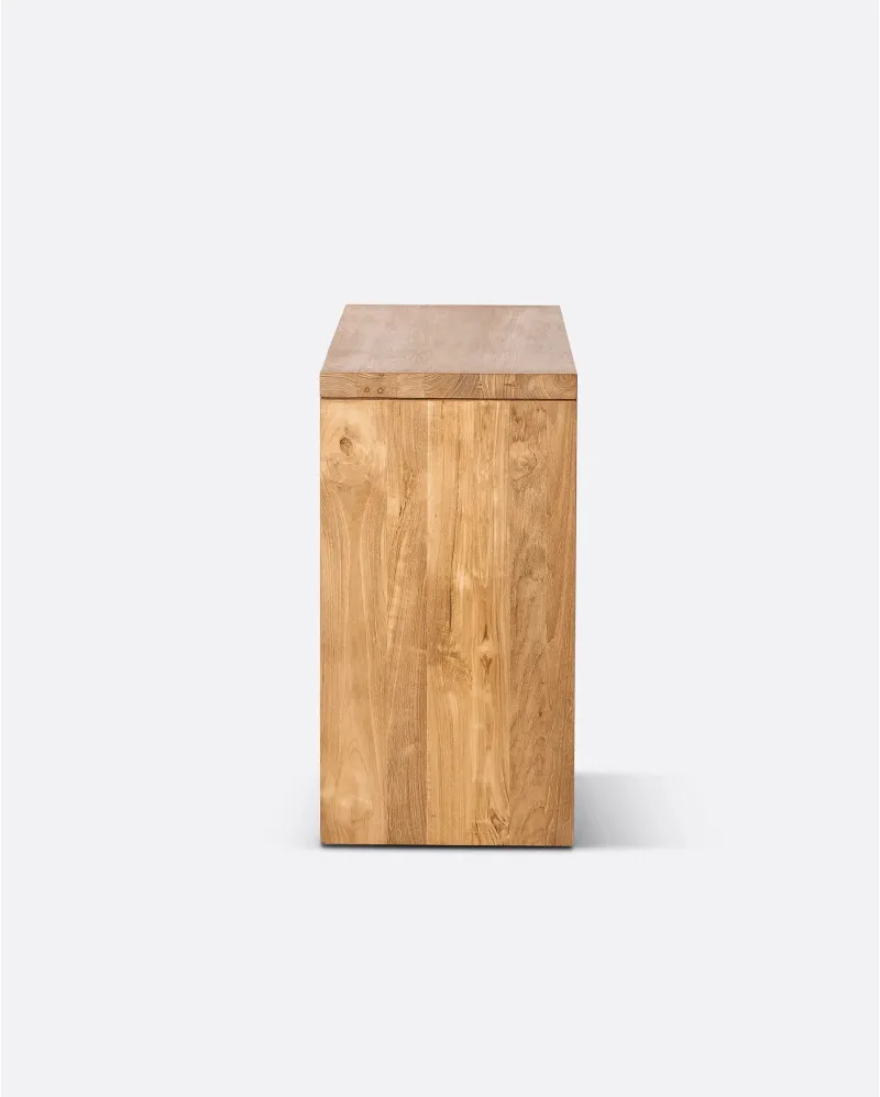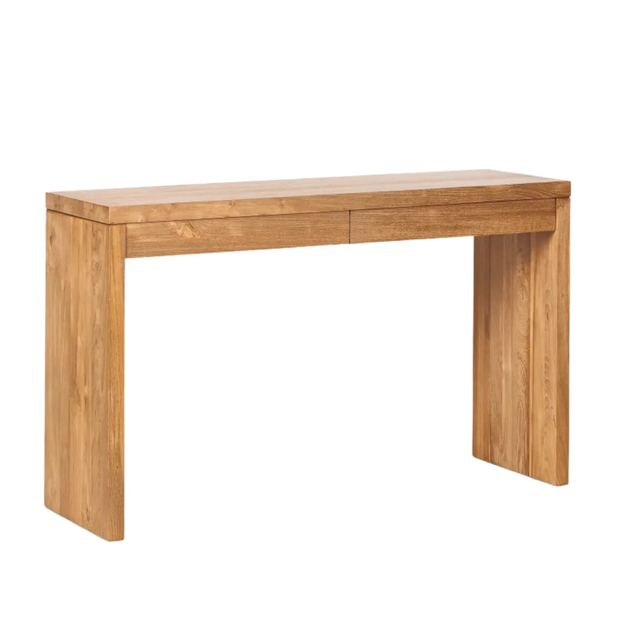 El escritorio de madera de teca GENESIS de Dareels 120 x 40 x 75 cm es una pieza de mobiliario elegante y sostenible elaborada con madera maciza recuperada. Su diseño minimalista y natural resalta las vetas y características únicas de la teca reciclada, aportando calidez y personalidad a espacios de trabajo, despachos o zonas de estudio.