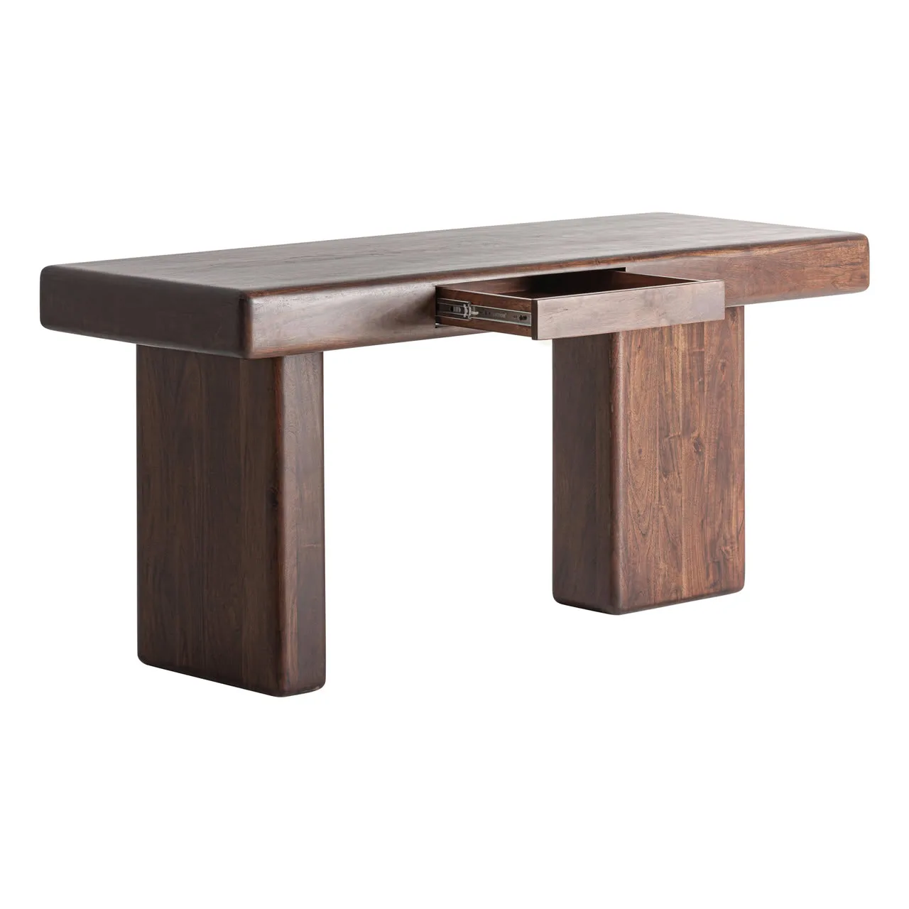 El Escritorio Eyzies de VICAL combina funcionalidad y diseño contemporáneo en una pieza de presencia sólida y serena. Realizado en madera de acacia en tono marrón, su estructura desmontable y sus líneas limpias lo convierten en una solución versátil para espacios de trabajo, despachos o proyectos hospitality. Un escritorio pensado para integrarse con naturalidad en interiores que valoran el diseño honesto y atemporal.