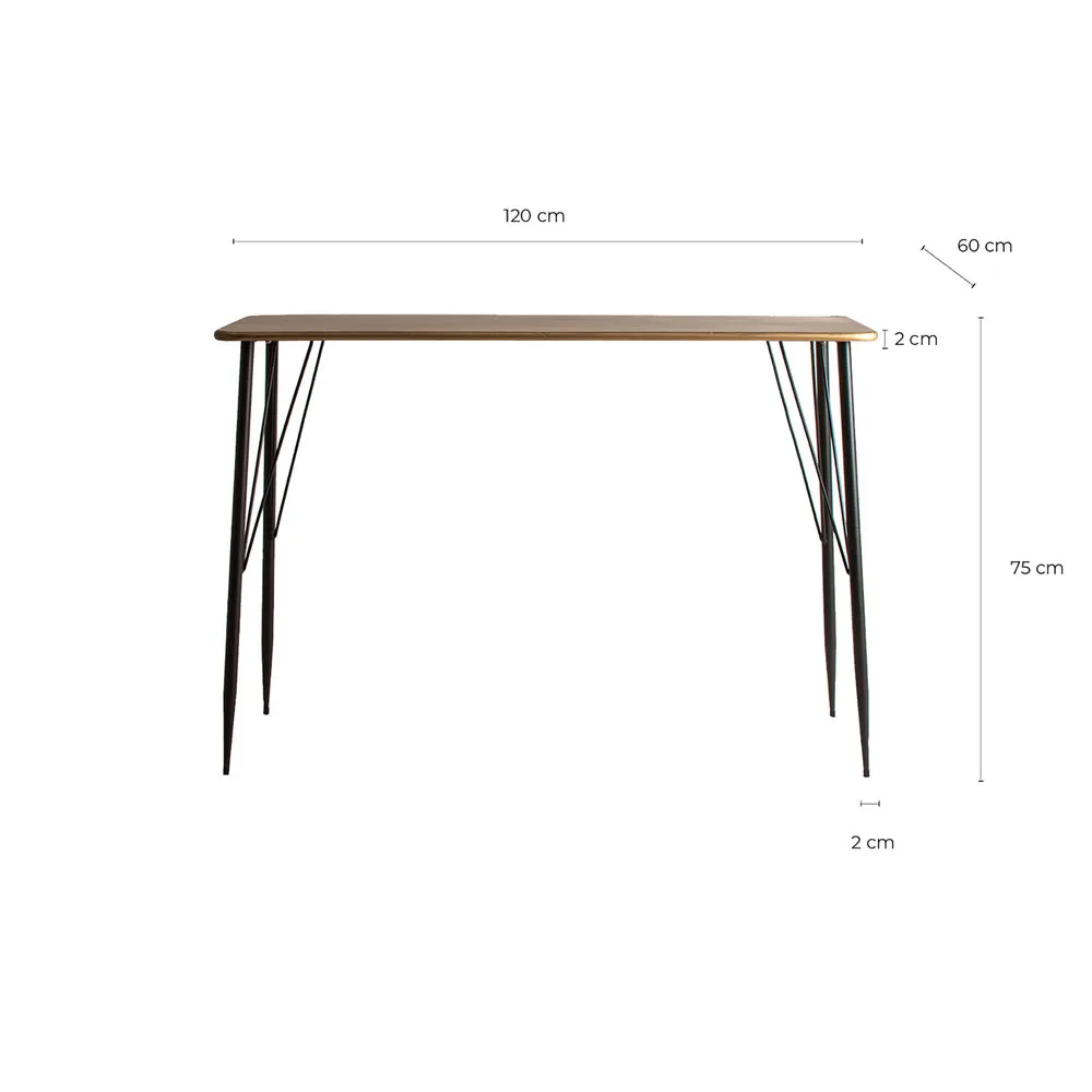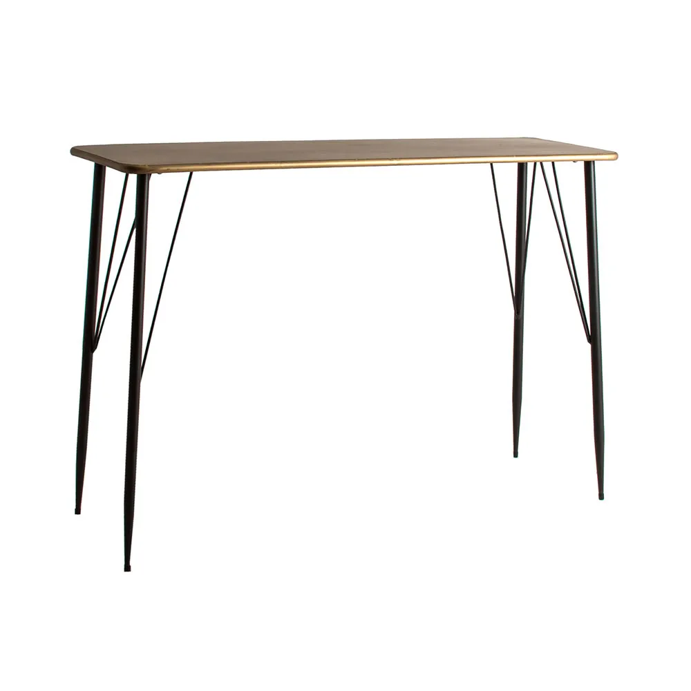 Escritorio rectangular reken de estilo vintage, fabricado en hierro en color negro en color oro con acabado viejo. Producto desmontable.