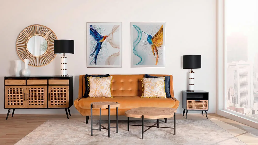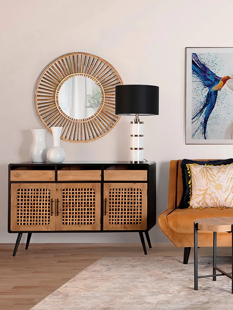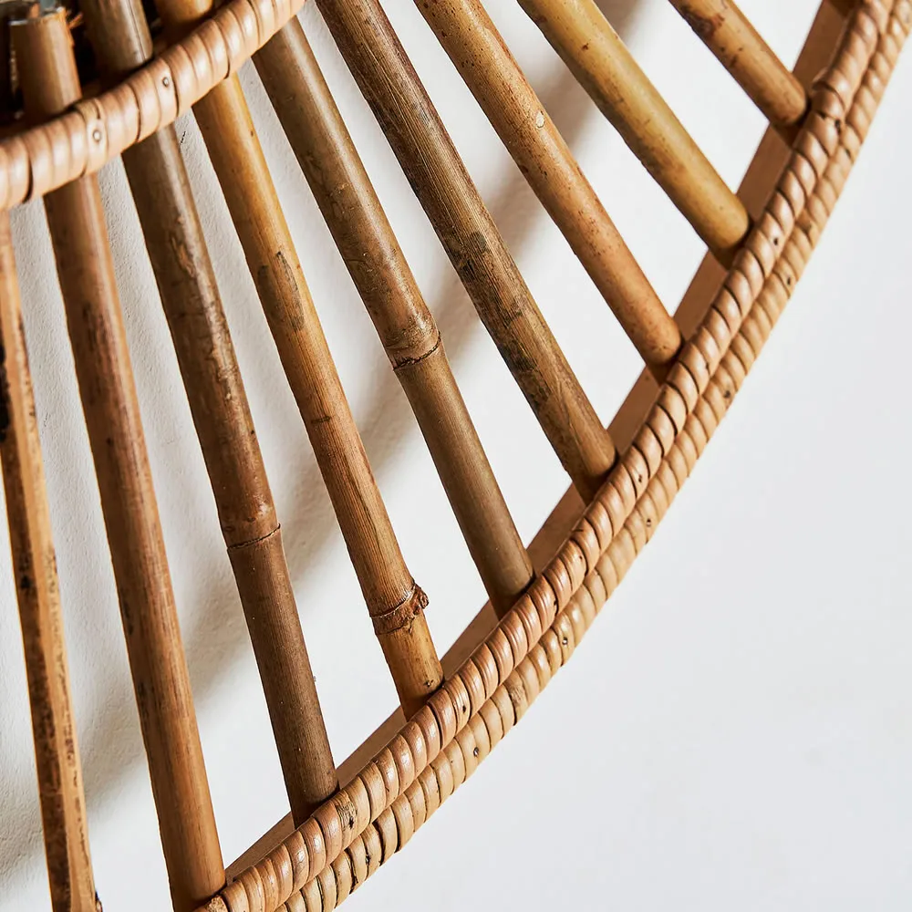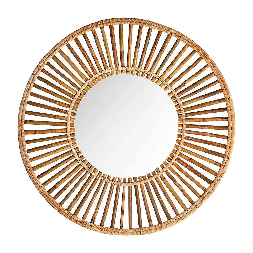Similar a la rueda de una bicicleta pero de madera natural. Así es el espejo Arteaga elaborado totalmente de bambú en su color natural. De forma circular, es una pieza perfecta para combinar con muebles de estilo nórdico en cualquier habitación de la casa. Su diámetro es de 90 cm.