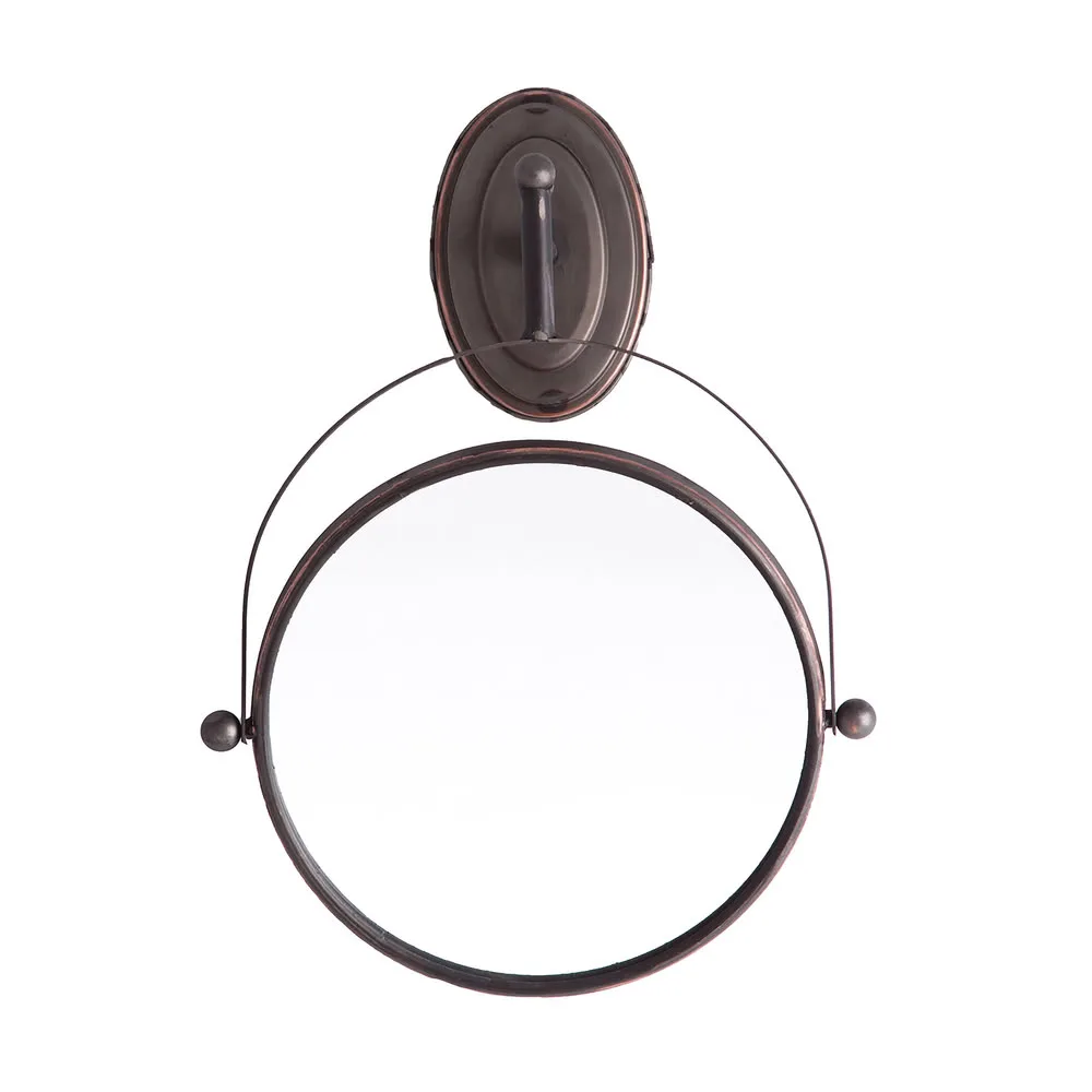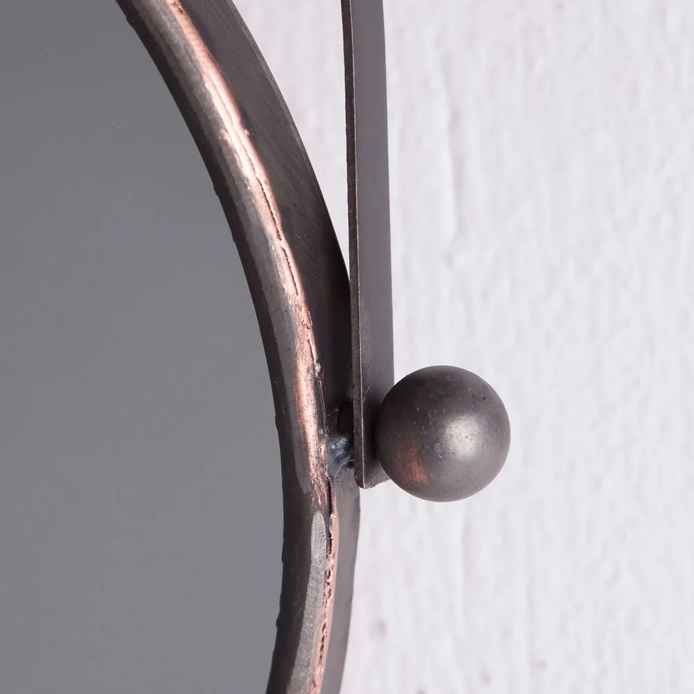 Espejo redondo reken de estilo industrial, fabricado en hierro en color plata con acabado envejecido, combinado con espejo.