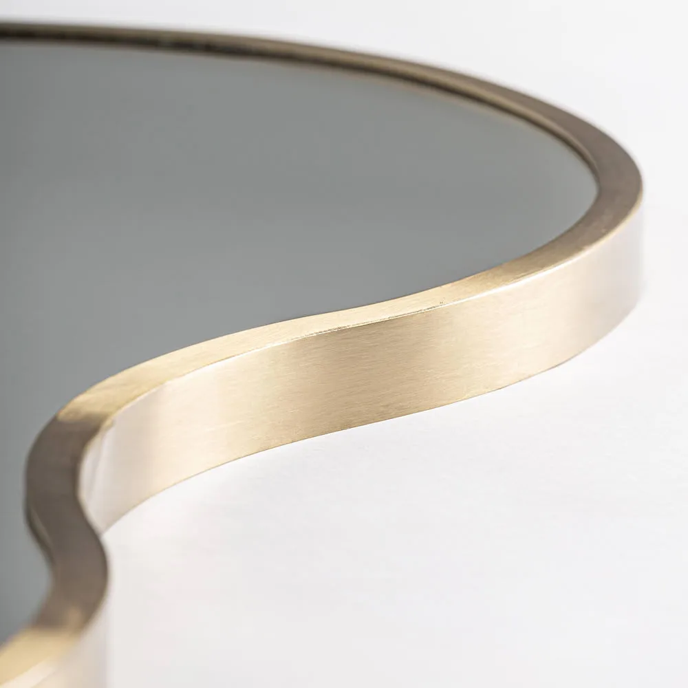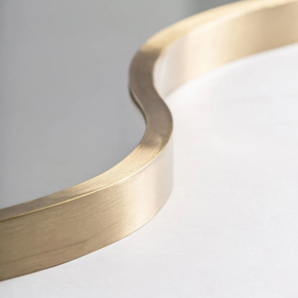 El espejo Rinhe, en acero dorado y cristal, presenta una estética art deco de gran sofisticación. Una creación de Vical Home que aporta luz y elegancia.