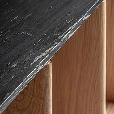 • Composición material: Madera de roble en color marrón claro, combinado con mármol en color negro mate veteado