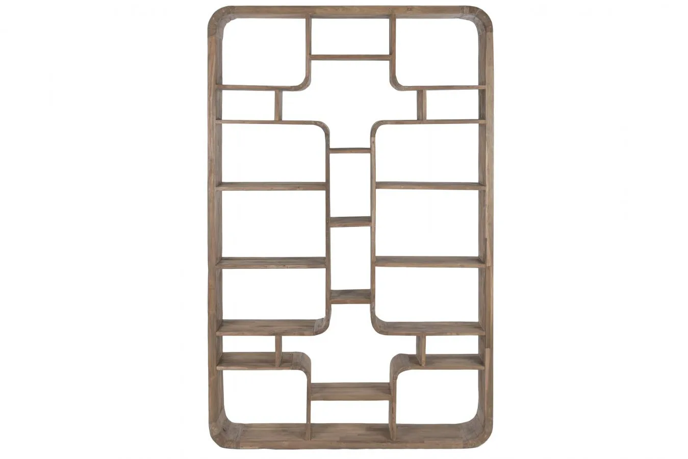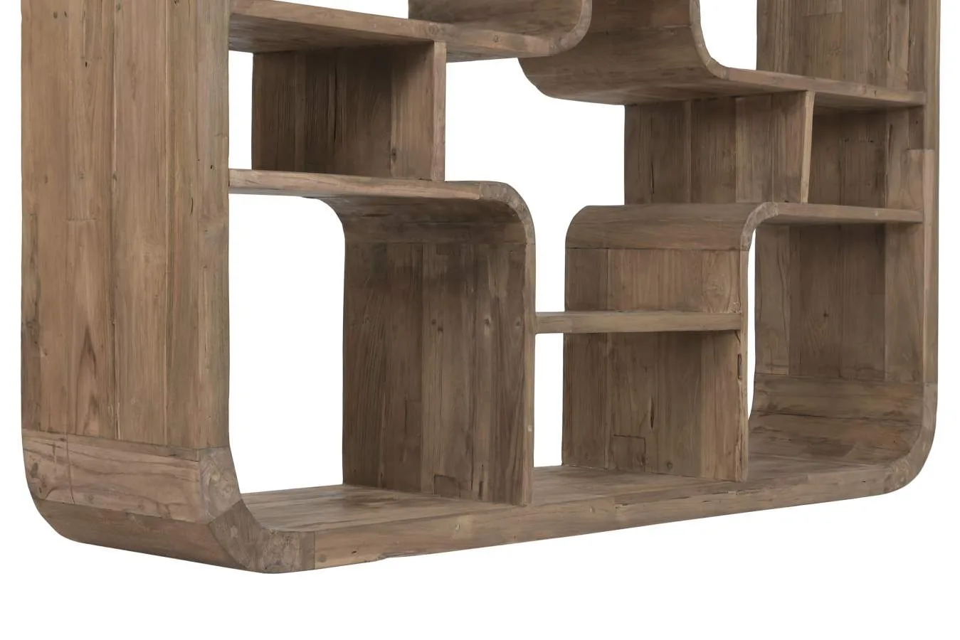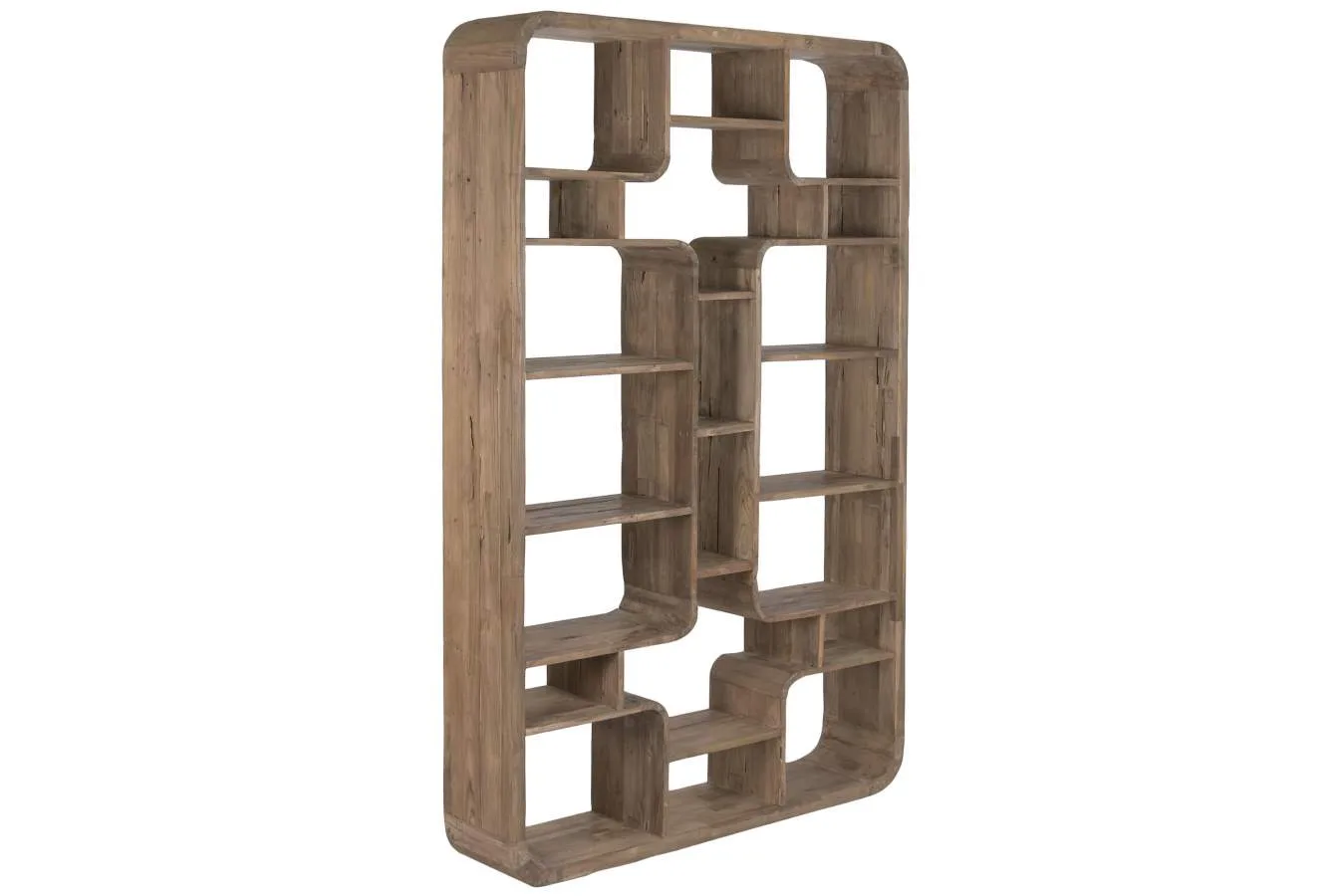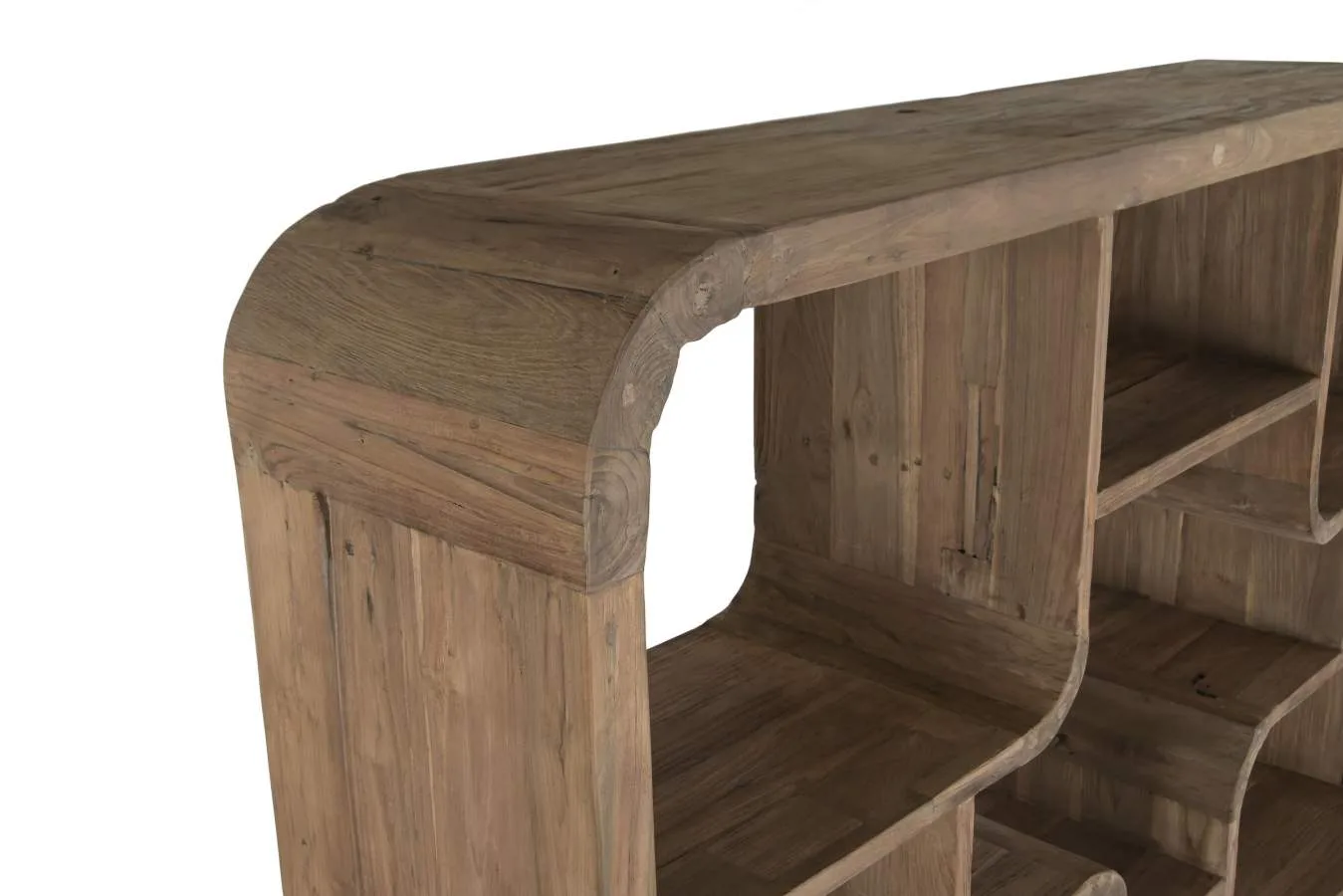 Estantería de gran formato fabricada en teca reciclada de tono natural, con un acabado cálido y sostenible de estética moderna. Su imponente altura y anchura la convierten en una pieza perfecta para salones, bibliotecas o estudios. Mide 140 cm de ancho, 30 cm de fondo y 220 cm de alto.