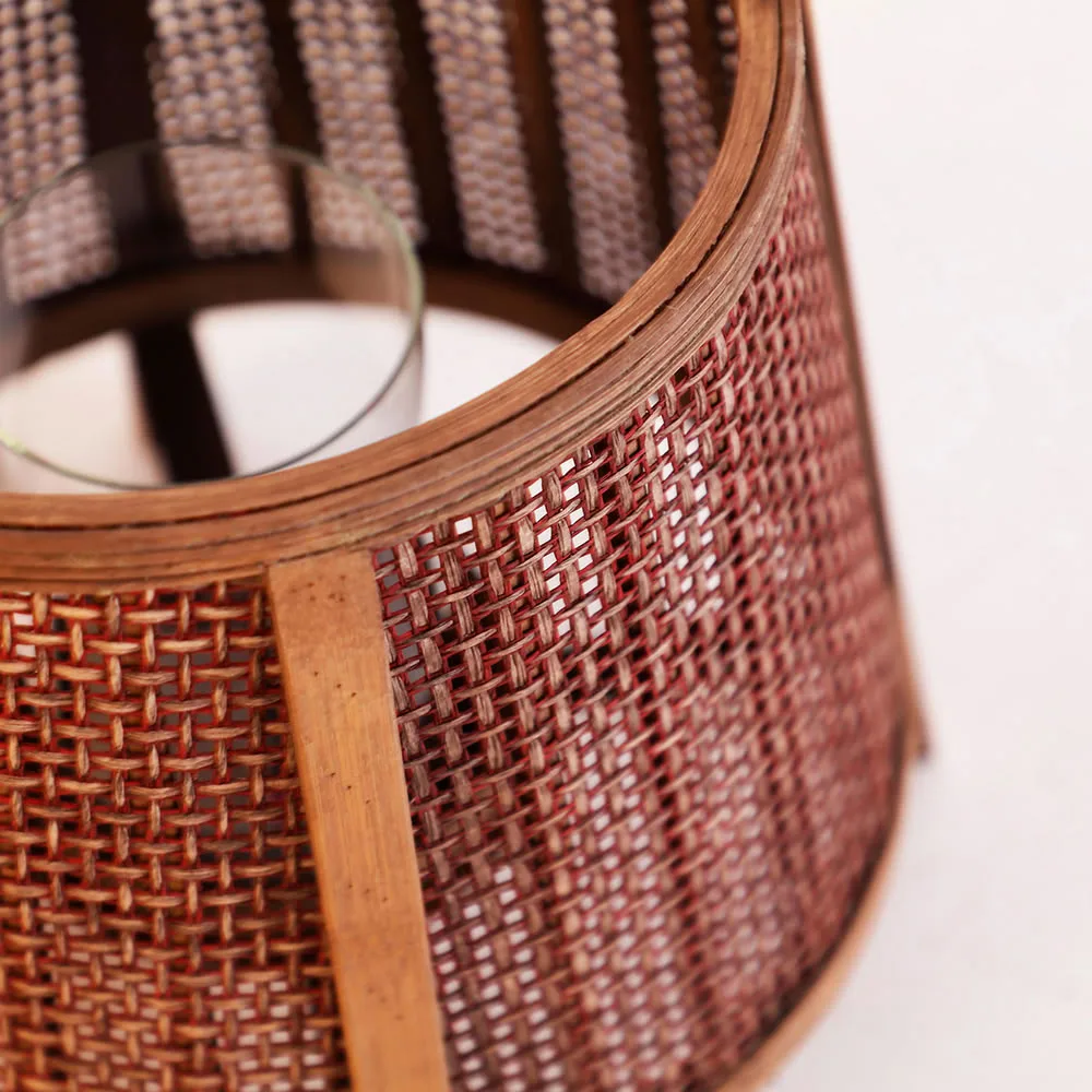 Explora el encanto y la elegancia del Farol Bled de Kodu. Con dimensiones de 32x32x44cm, este farol, realizado en bambú natural combinado con lino, es el accesorio perfecto para iluminar y aportar un ambiente cálido y acogedor a tus espacios. Su diseño combina funcionalidad y estilo, creando una pieza única que armoniza con diversos entornos y estilos decorativos. Su presencia añade un toque de encanto y distinción, haciendo de tus espacios un lugar más acogedor y encantador, todo bajo el sello de calidad y diseño de Kodu.