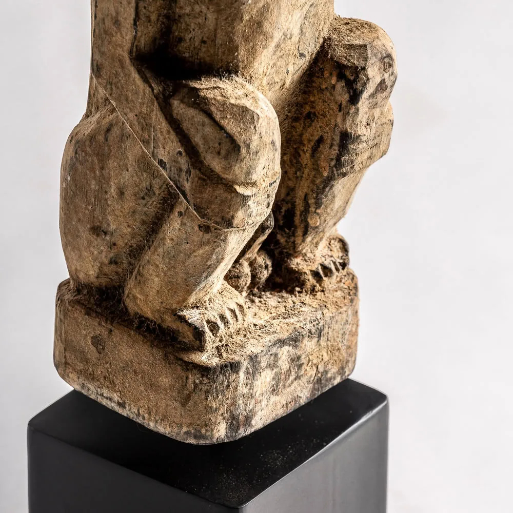 Figura decorativa de estilo étnico fabricado en madera de mango en color negro con acabado envejecido en color natural.