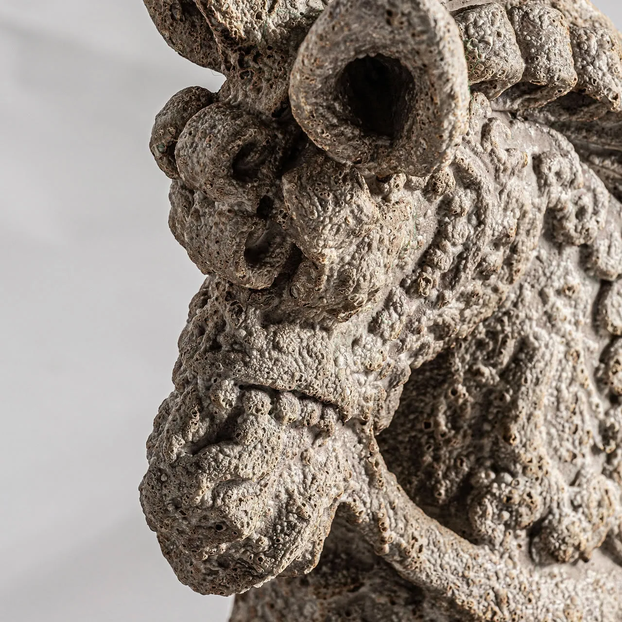Figura decorativa Caballo de estilo oriental, fabricado en terracota en color tonos en verde con acabado envejecido.
