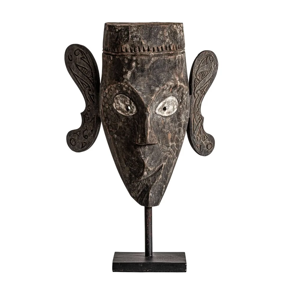 Figura decorativa de estilo étnico fabricado en madera tropical en color marrón con acabado envejecido.
