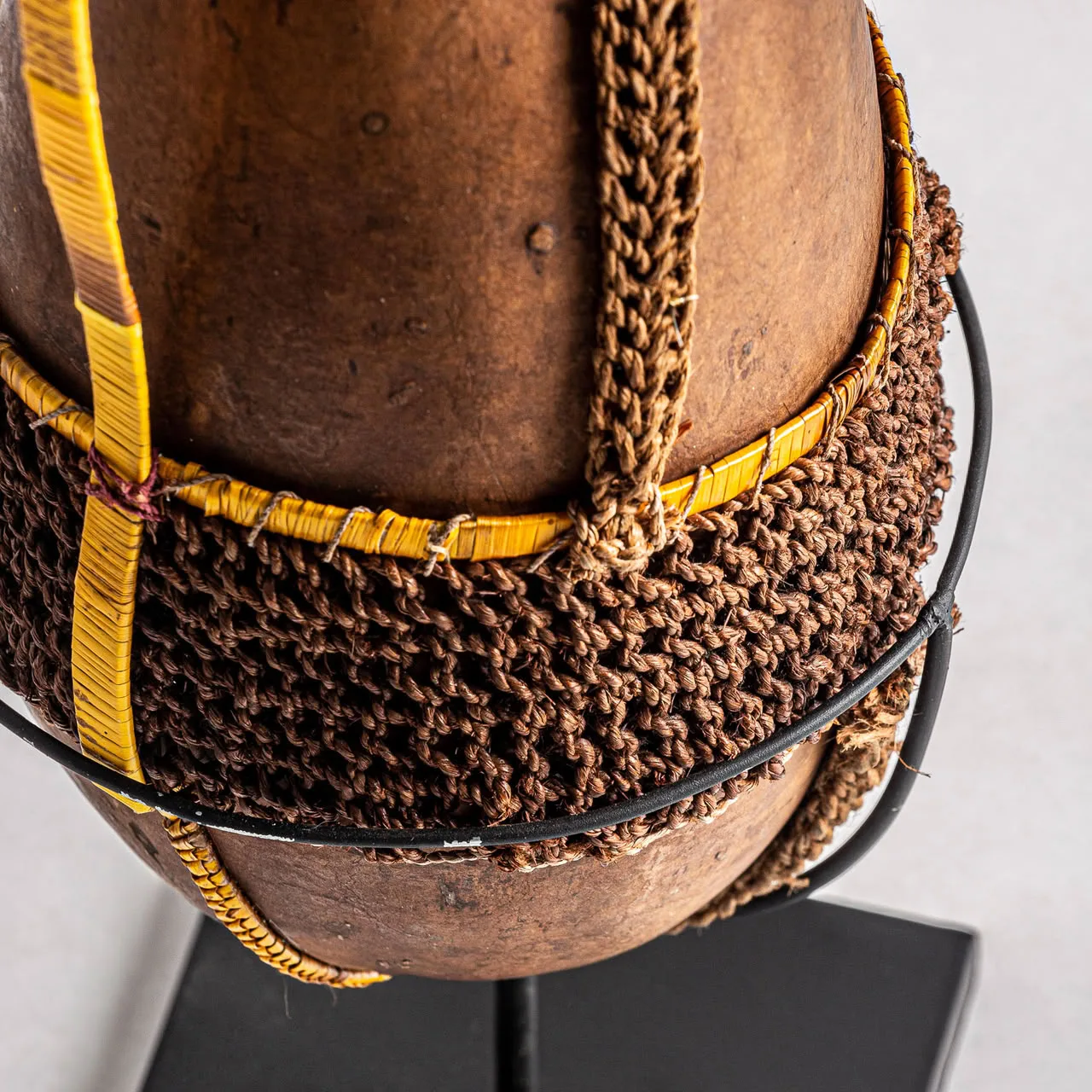 Figura decorativa Ifere de estilo oriental, fabricado en calabaza en color marrón con acabado natural, combinado con hierro. Producto desmontable.