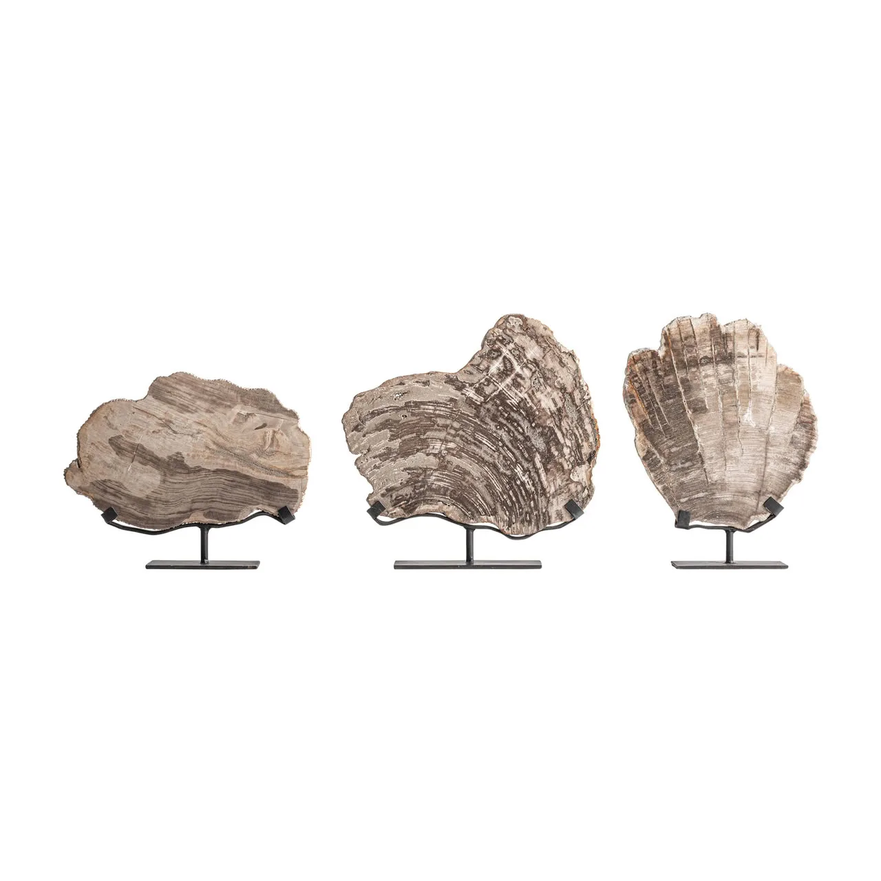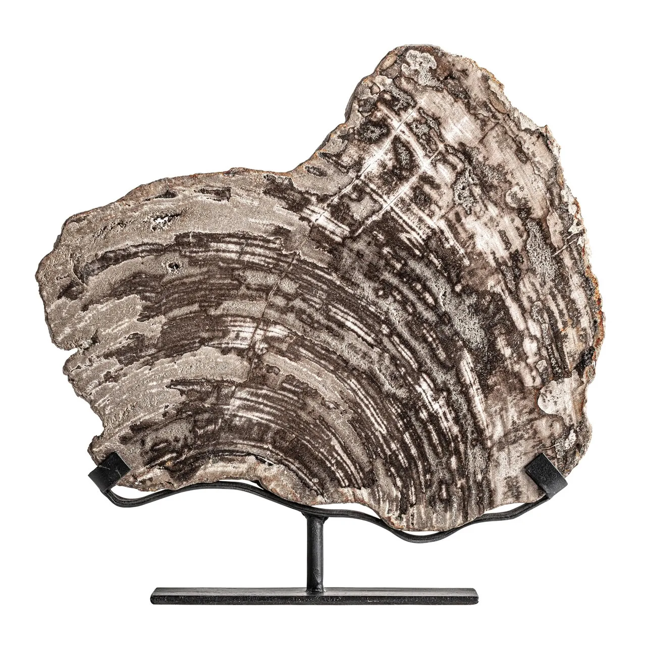 Figura decorativa, fabricado en madera petrificada en color gris, combinado con hierro.