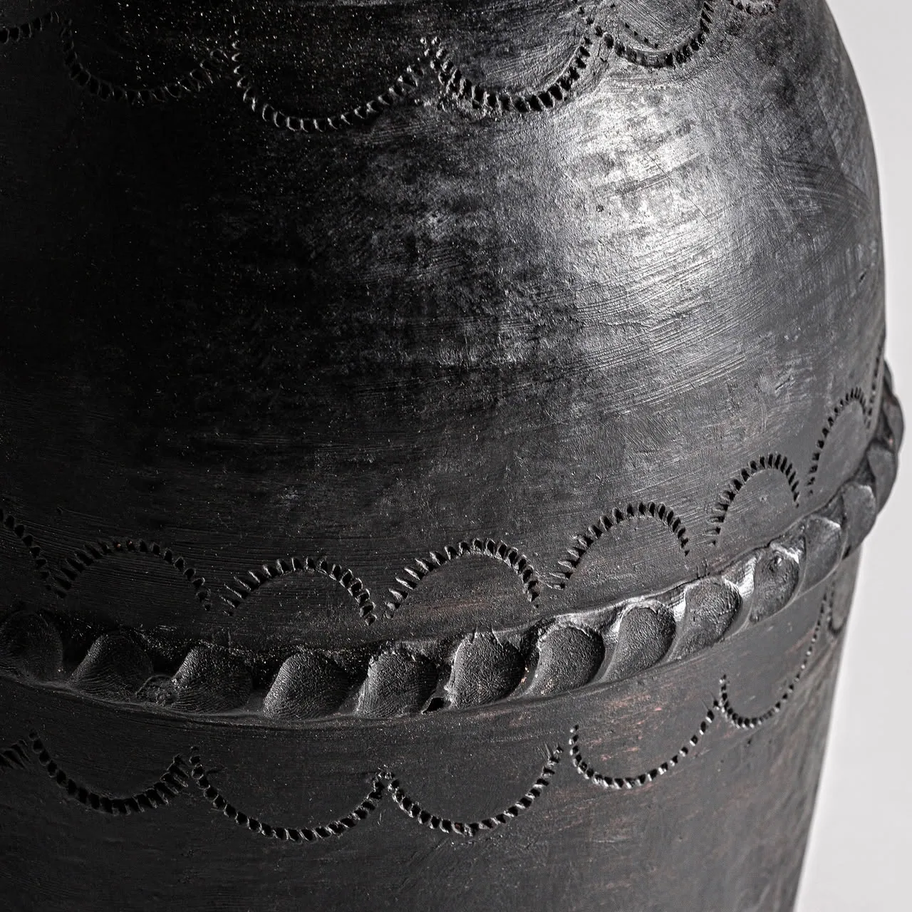 Jarrón Berthoire de estilo vintage, fabricado en terracota en color negro.