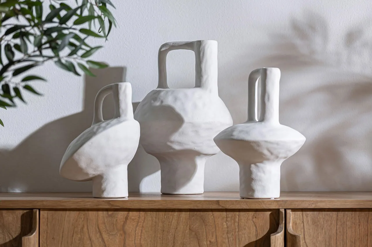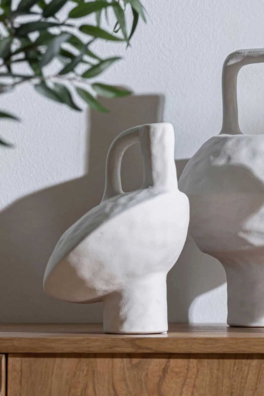 Jarrón irregular bleck de estilo contemporáneo, fabricado en cerámica en color blanco.