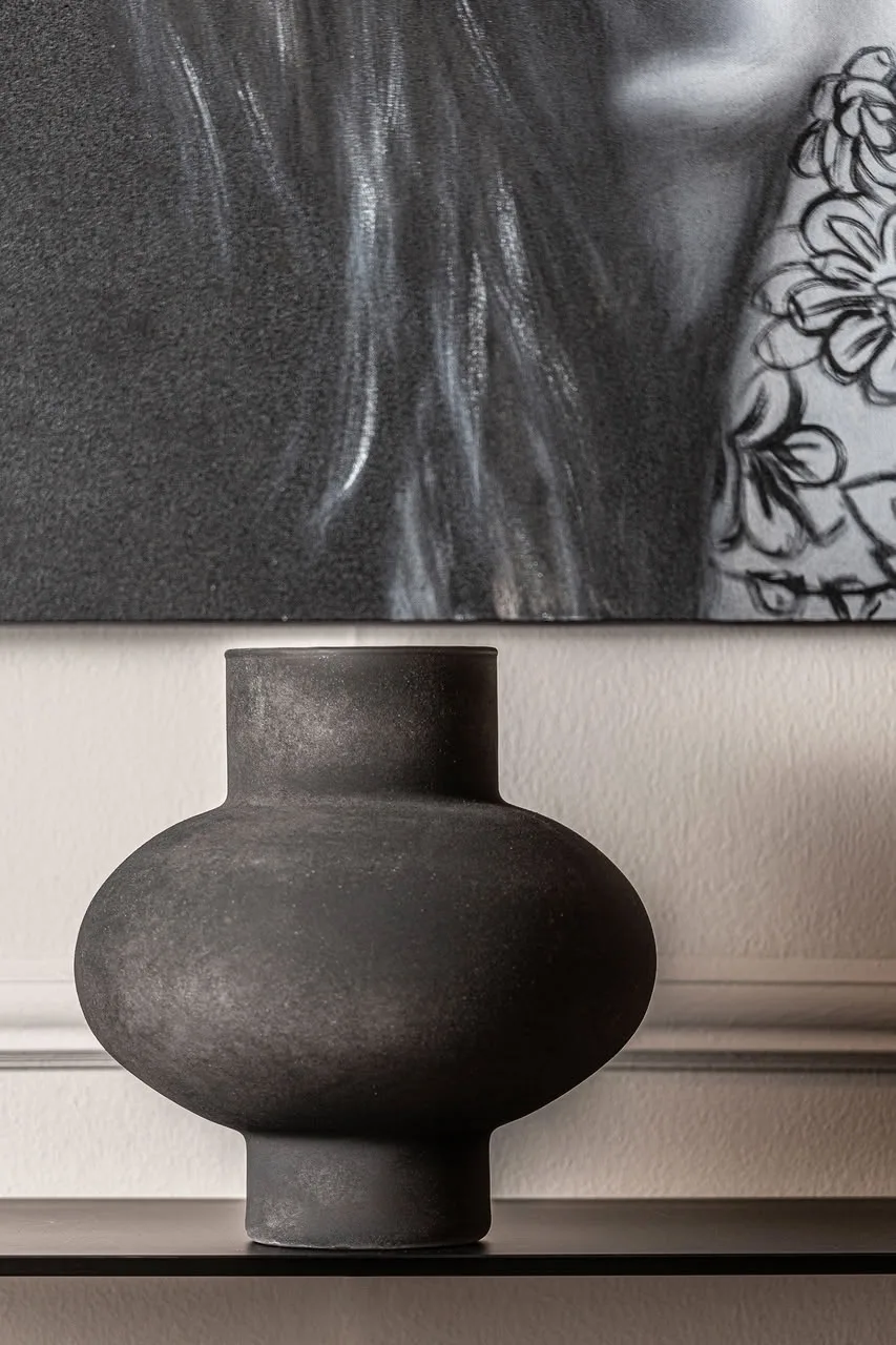 Jarrón irregular ghalea, en color negro, de estilo shabby chic. Fabricado en vidrio.