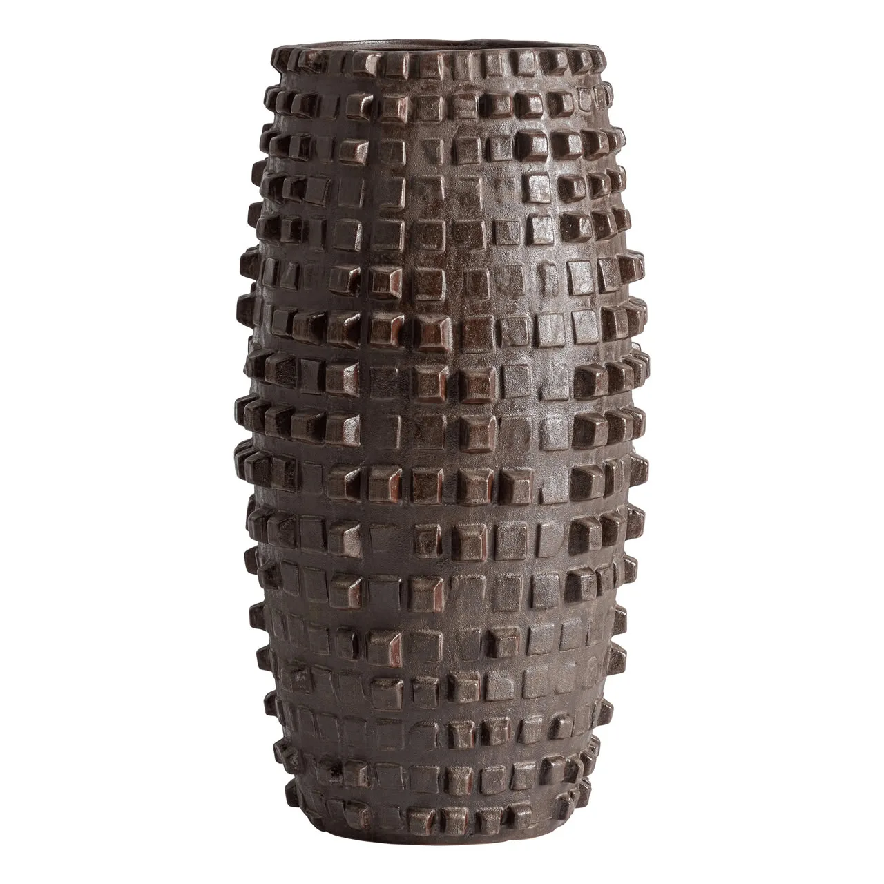 Jarrón Haimi de estilo contemporáneo, fabricado en cerámica en color marrón.