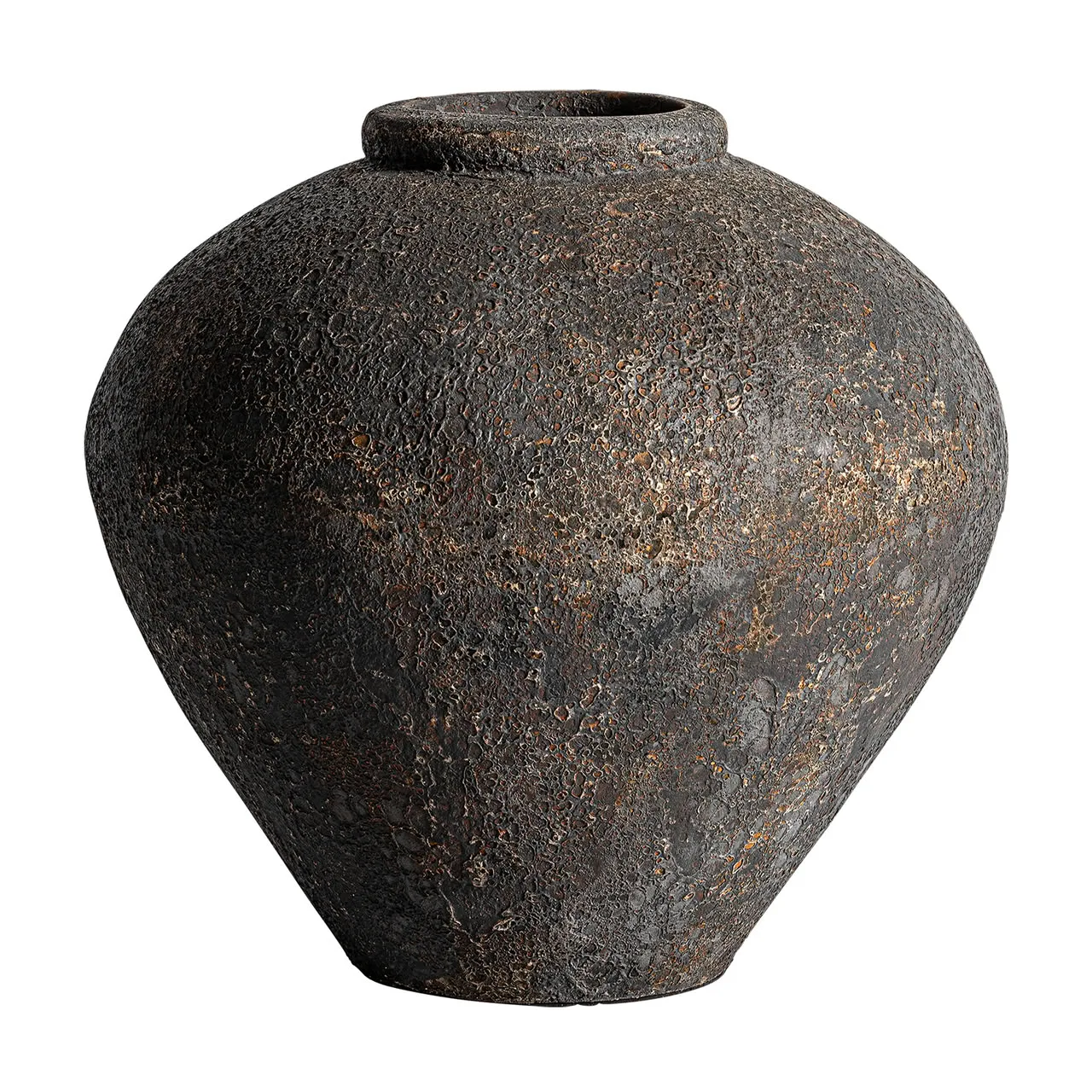 Jarrón igor de estilo contemporáneo, fabricado en terracota en color tonos oscuros.