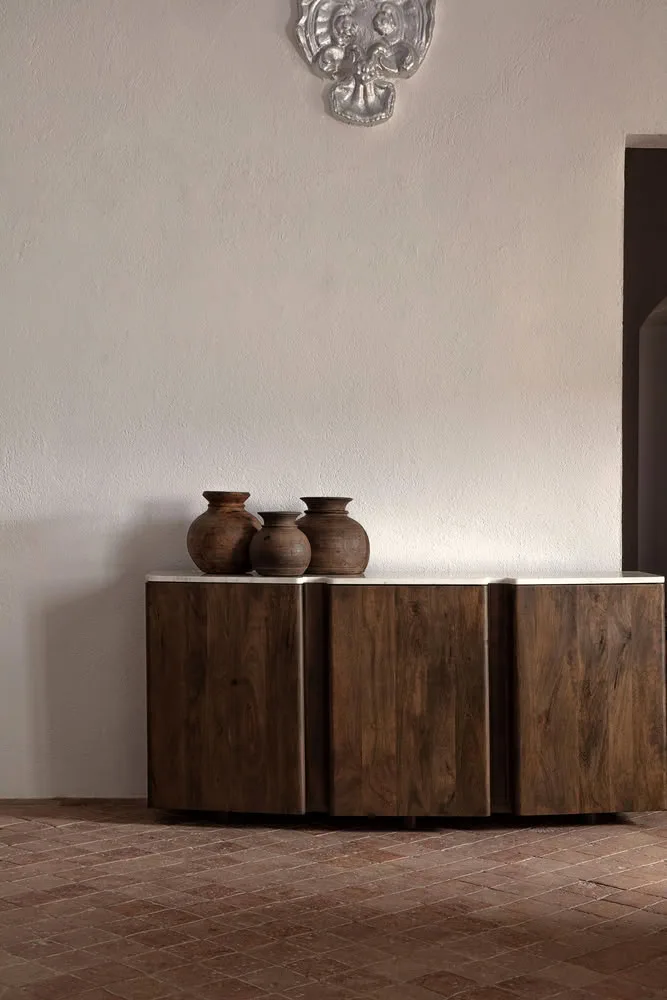 Jarrón j 3 Vleok de estilo étnico fabricado en madera de mango reciclada en color marrón.