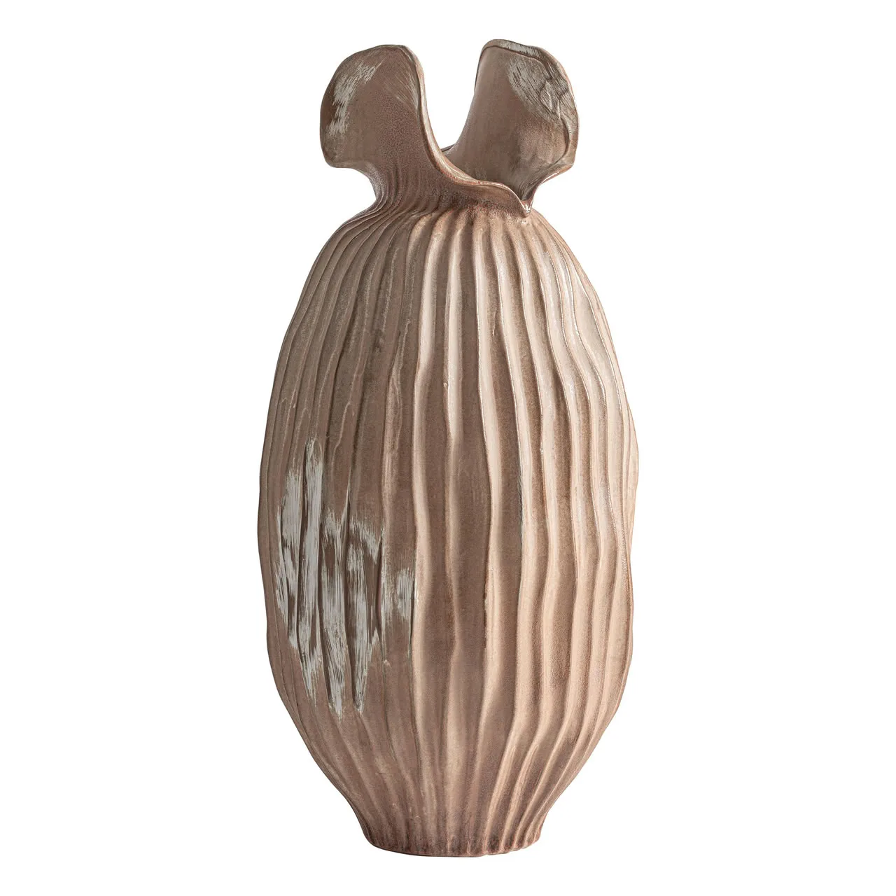 Jarrón Lais de estilo contemporáneo, fabricado en cerámica en color marrón claro.