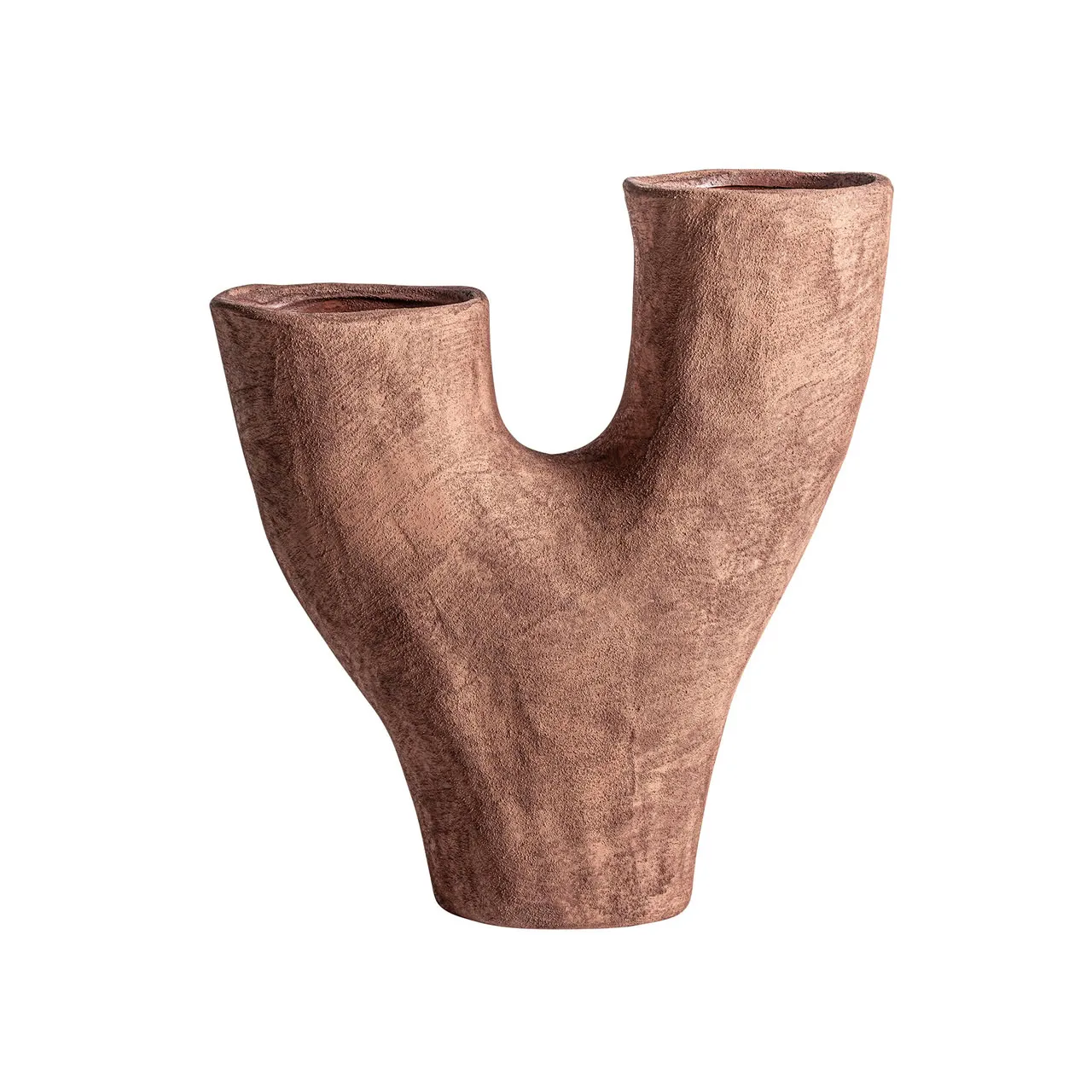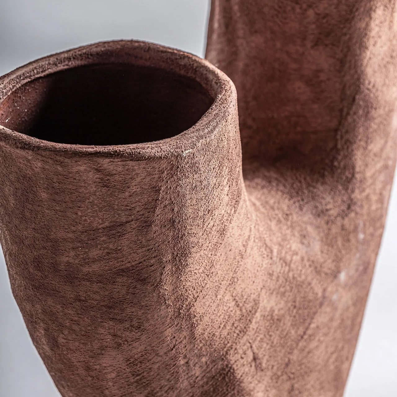 Jarrón irregular mezin de estilo contemporáneo, fabricado en cerámica en color marrón.