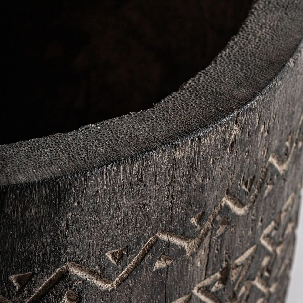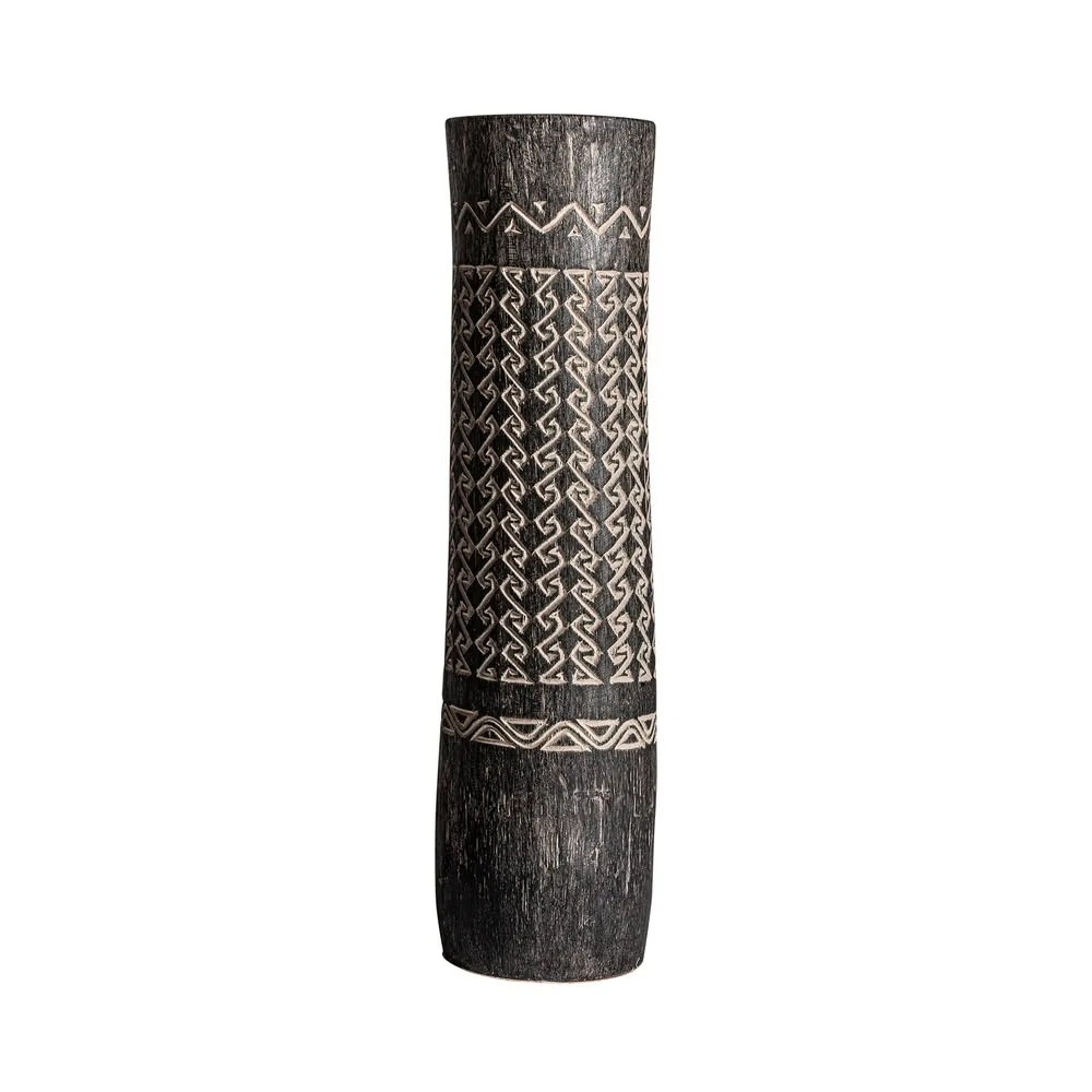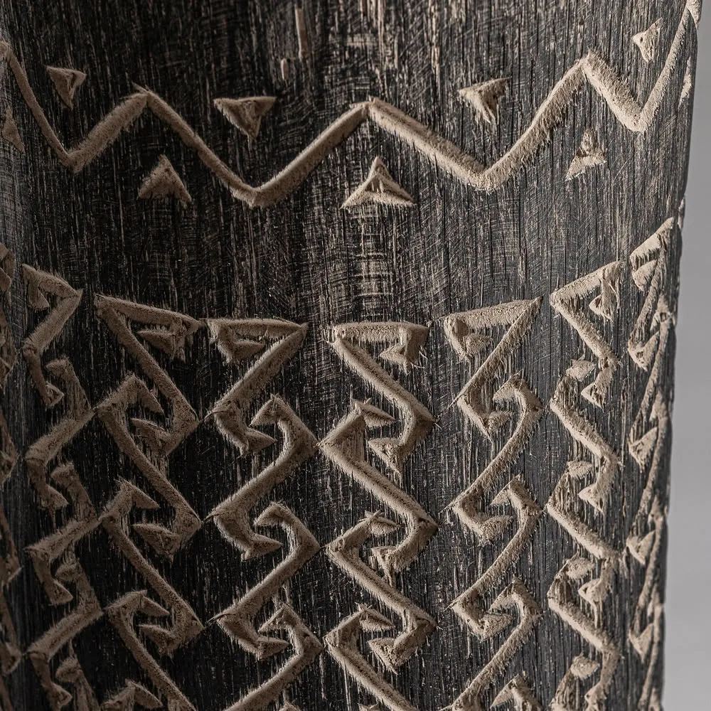 Jarrón nantua de estilo contemporáneo fabricado en madera palma en color tonos en marrón con acabado tallado.