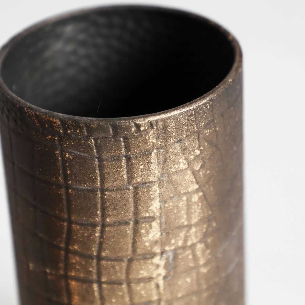 Jarrón redondo vesc de estilo art deco, fabricado en hierro en color oro.