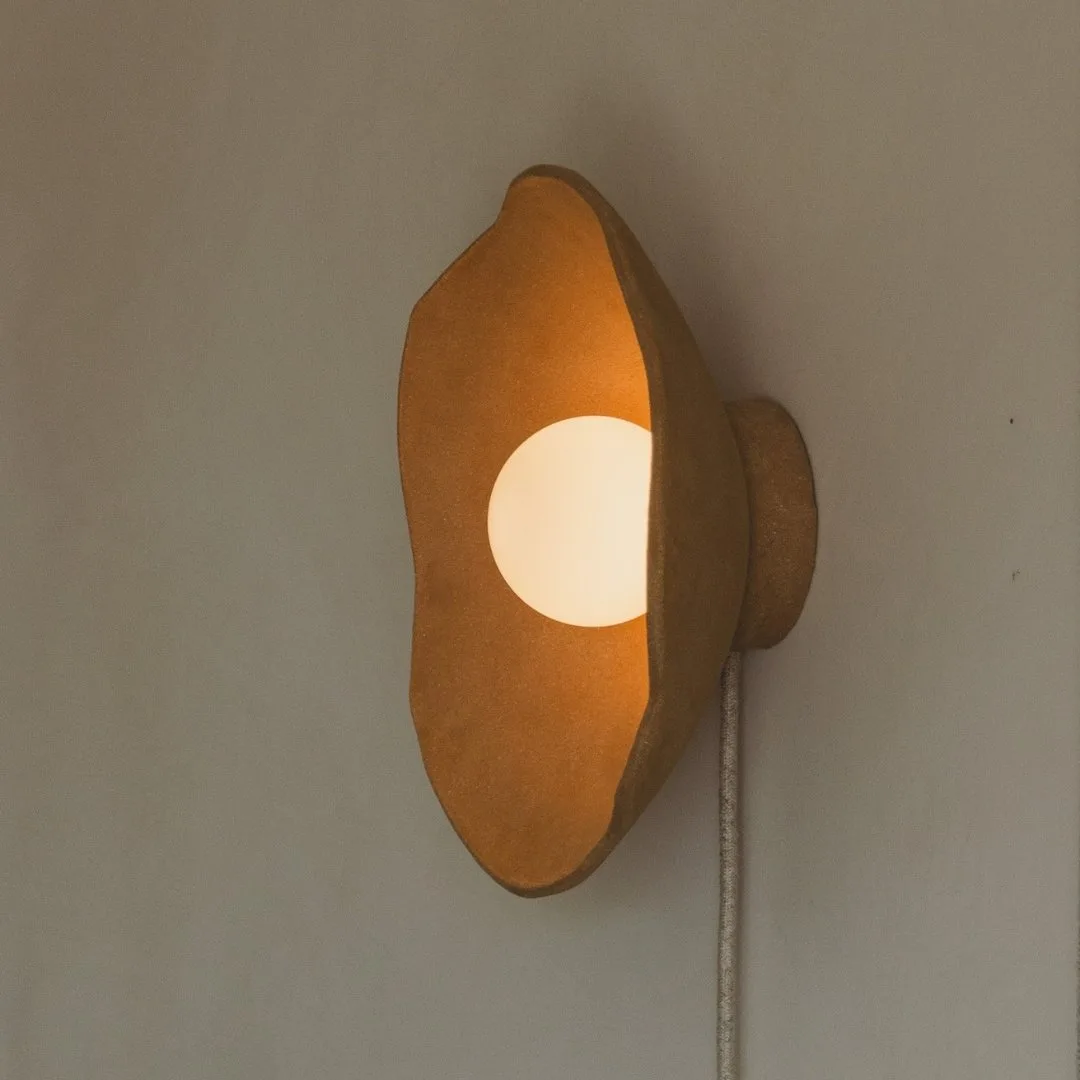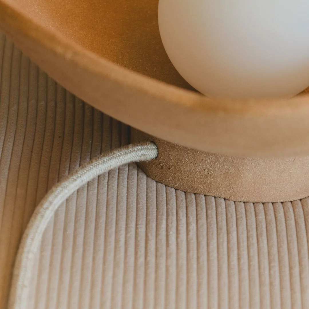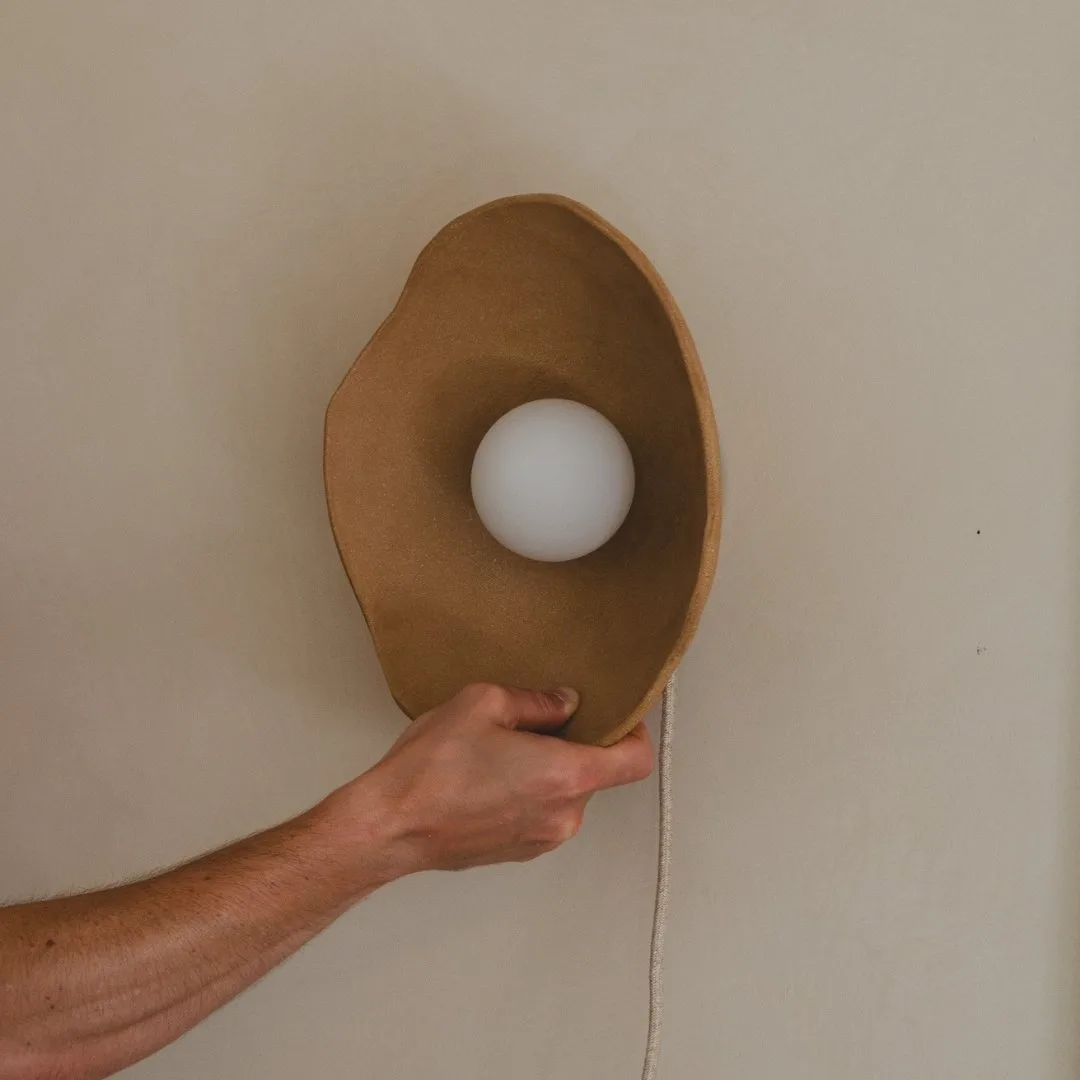 La Lámpara ALLUVIUM es una pieza escultural creada en cerámica y acabada en un elegante tono dorado. Su forma, suave y orgánica, recuerda a las líneas moldeadas por el viento y el tiempo en los paisajes áridos. Cada lámpara es modelada y acabada a mano por la artista Ayala Braidman, lo que convierte a cada unidad en una obra única con carácter propio.