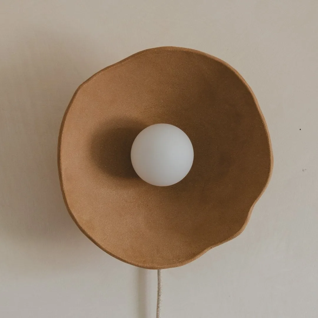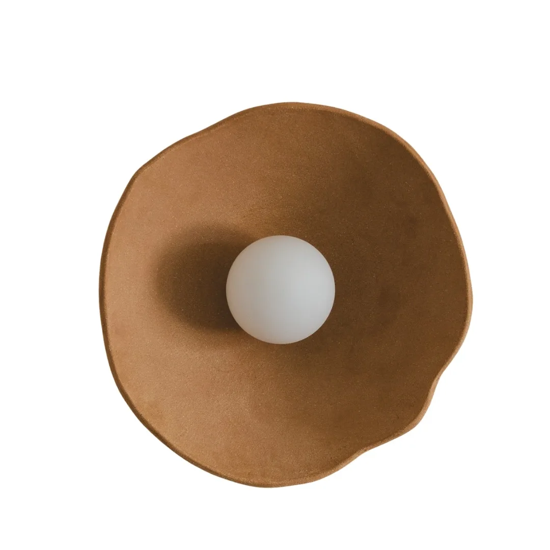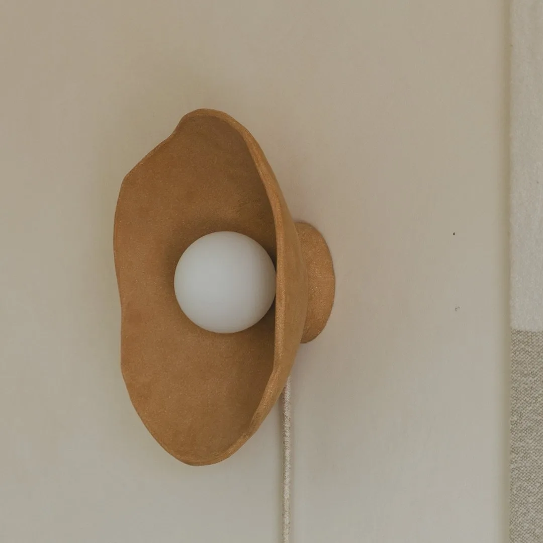 La Lámpara ALLUVIUM es una pieza escultural creada en cerámica y acabada en un elegante tono dorado. Su forma, suave y orgánica, recuerda a las líneas moldeadas por el viento y el tiempo en los paisajes áridos. Cada lámpara es modelada y acabada a mano por la artista Ayala Braidman, lo que convierte a cada unidad en una obra única con carácter propio.