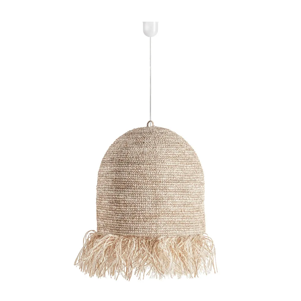 Lámpara de colgar de estilo contemporáneo fabricado en fibra natural en color marrón.