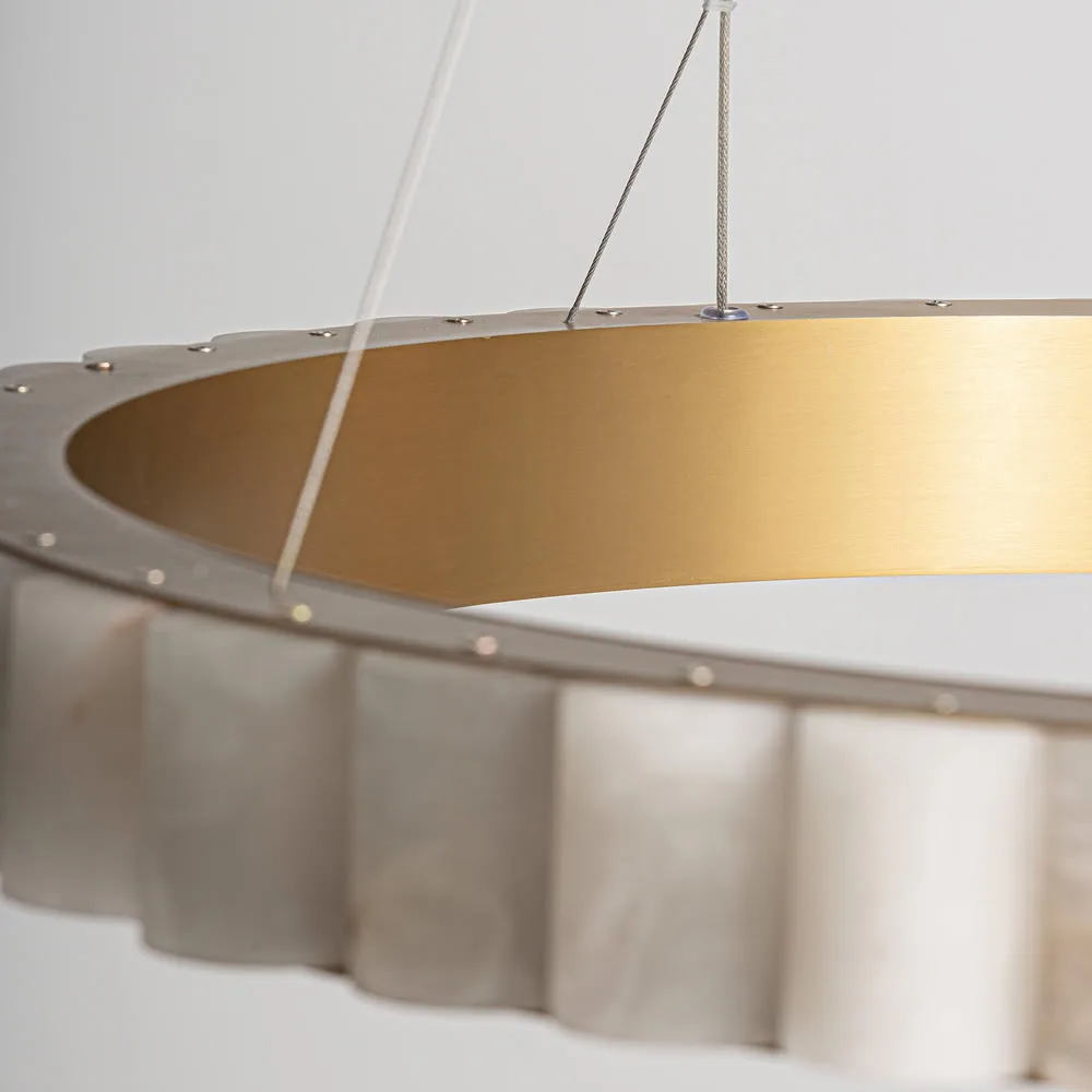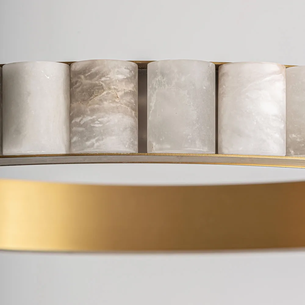 Lámpara de colgar Aurea de estilo art deco fabricado en alabastro en color blanco combinado con acero en color oro con acabado bronce.