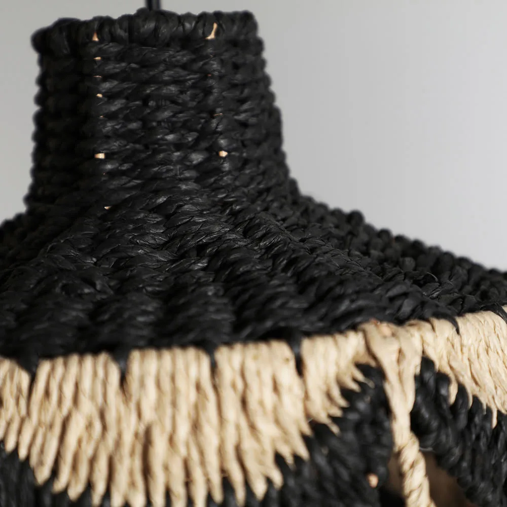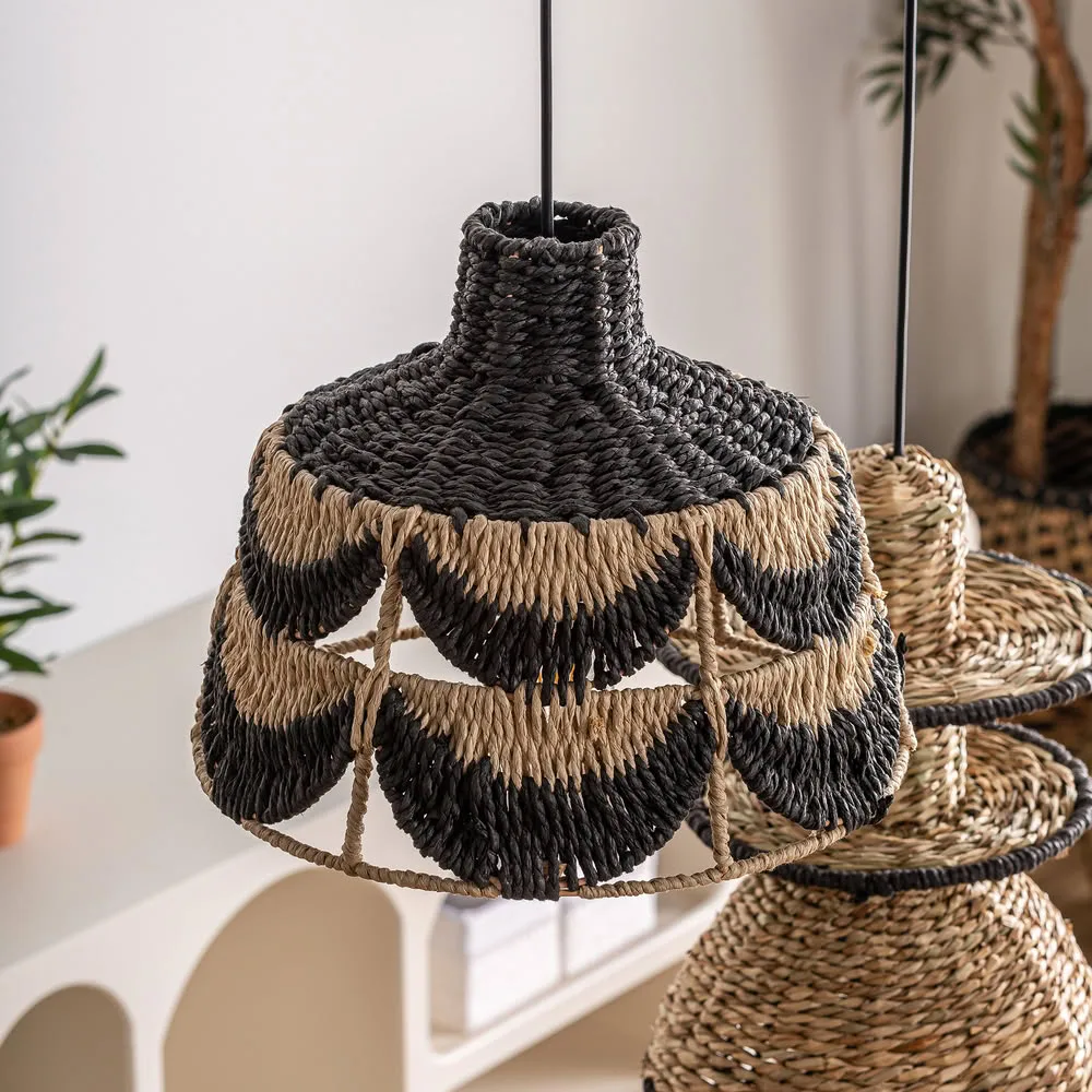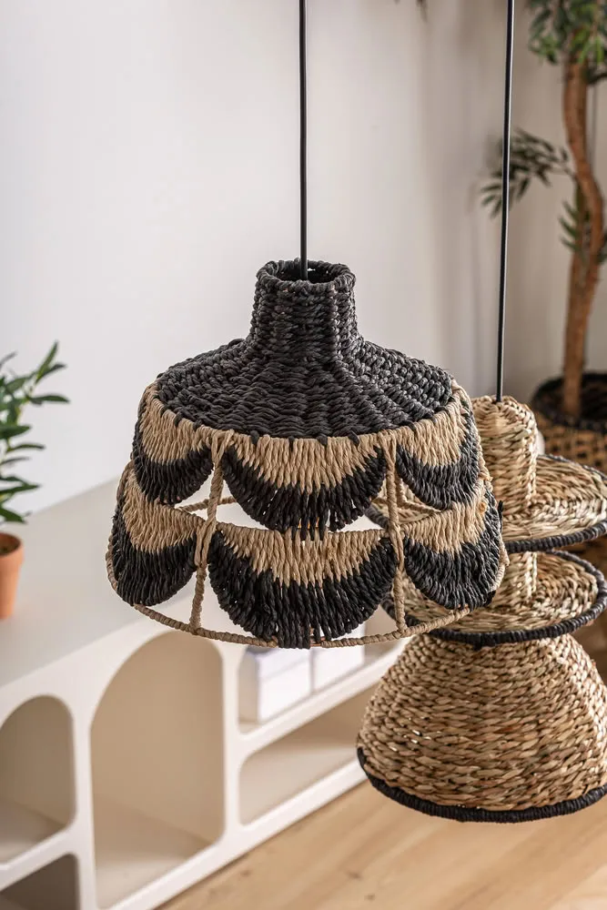 Una lámpara con movimiento propio. Lisse destaca por su trenzado ondulado en cuerda natural y su diseño fluido. El contraste de texturas con el hierro aporta equilibrio y modernidad a cualquier estancia.