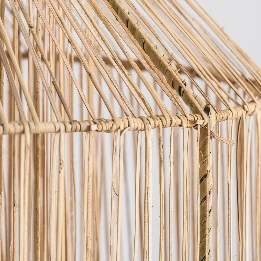 Lámpara de colgar de estilo contemporáneo fabricado en ratán en color marrón.