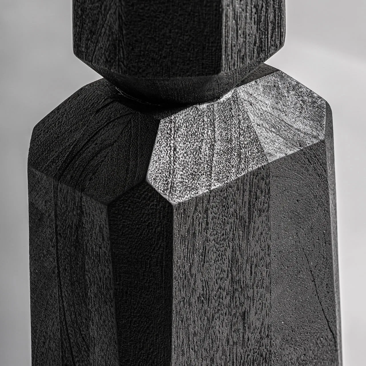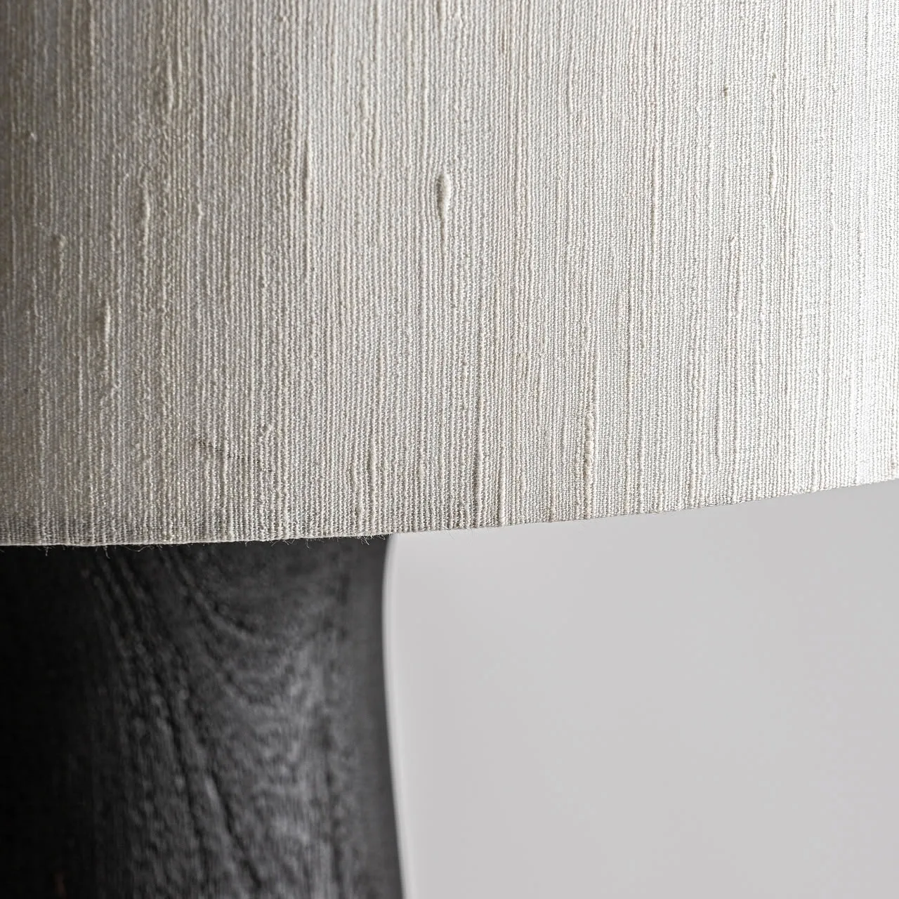 Lámpara de pie cogne de estilo contemporáneo, fabricado en madera de mango en color negro, combinado con yute en color crema.