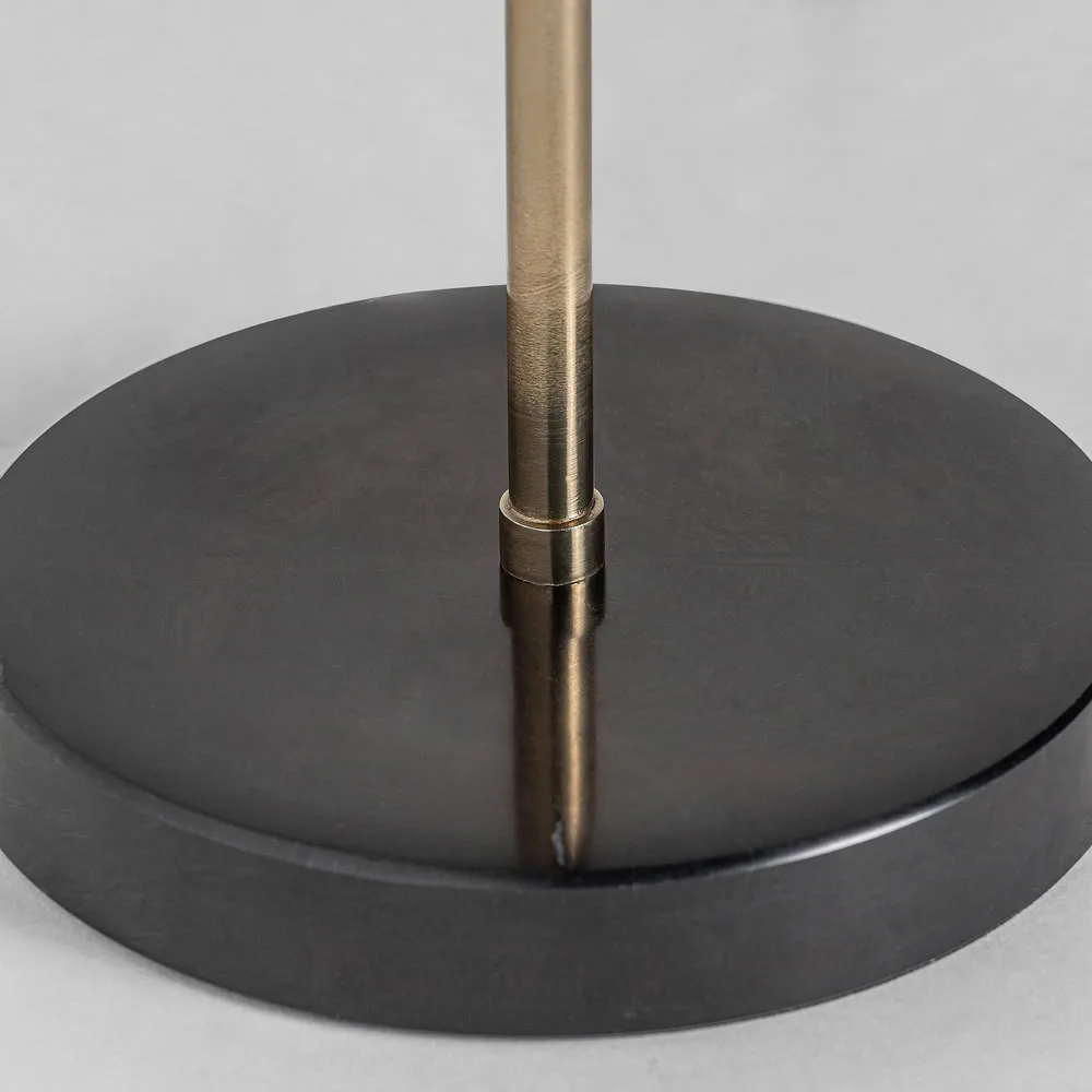 Lámpara de sobremesa Julie de estilo art deco fabricado en hierro en color oro combinado con mármol en color negro. Producto desmontable.