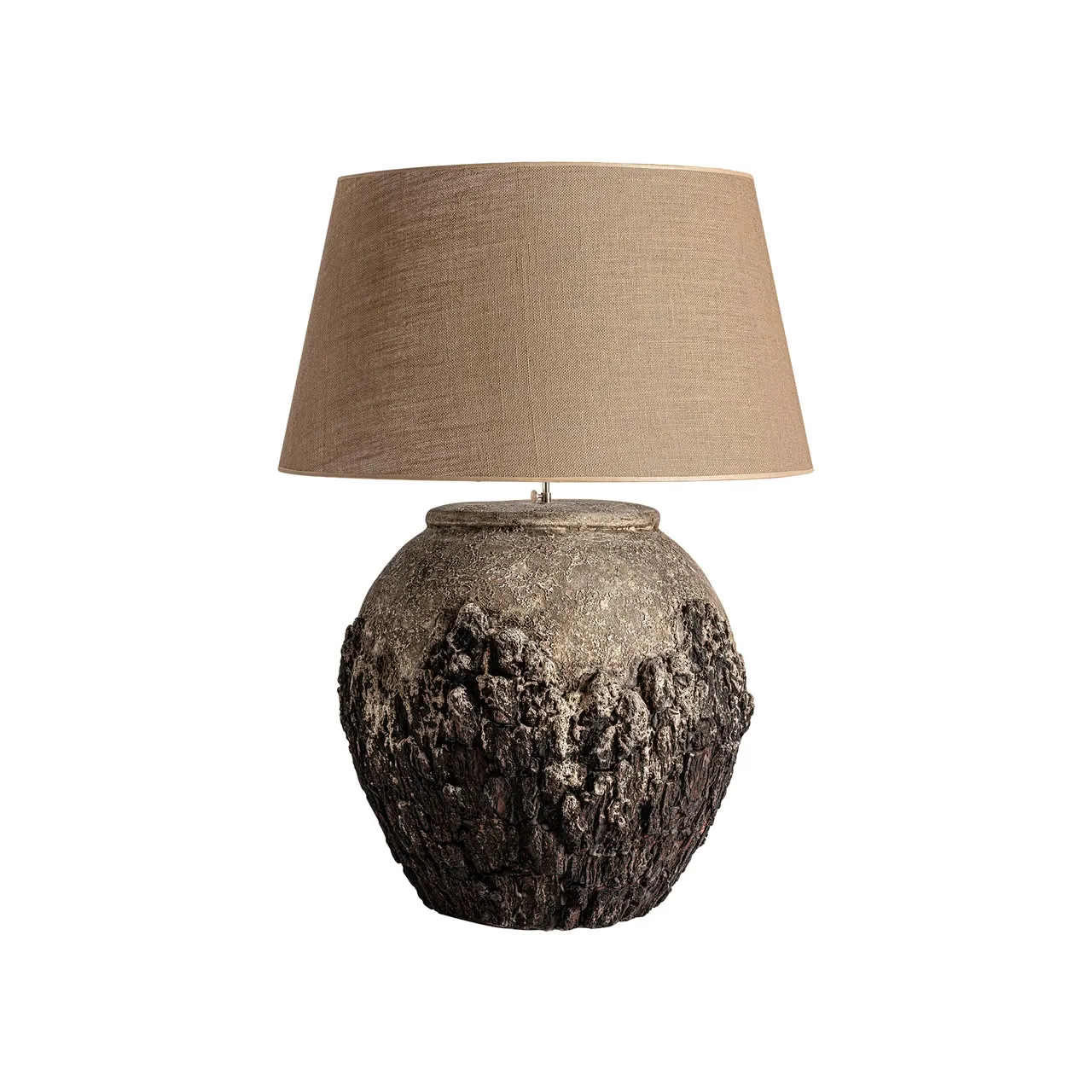 Lámpara de sobremesa Klanjea de estilo vintage, fabricado en cerámica en color tonos en marrón con acabado envejecido, combinado con yute.