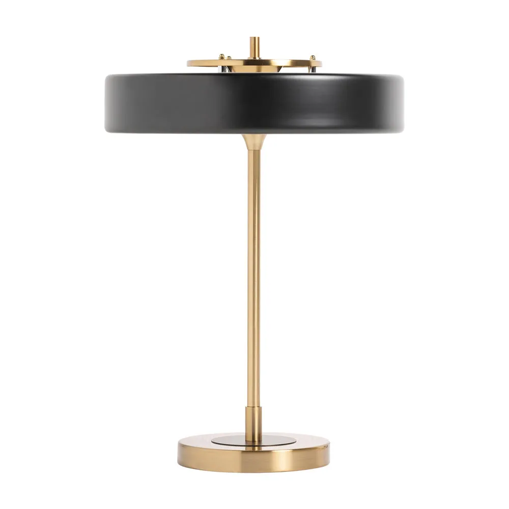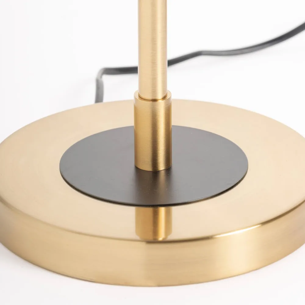 Lámpara de sobremesa maoz de estilo art deco fabricado en hierro en color oro combinado con acrílico en color negro.