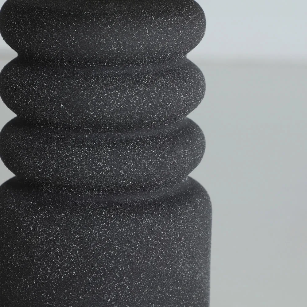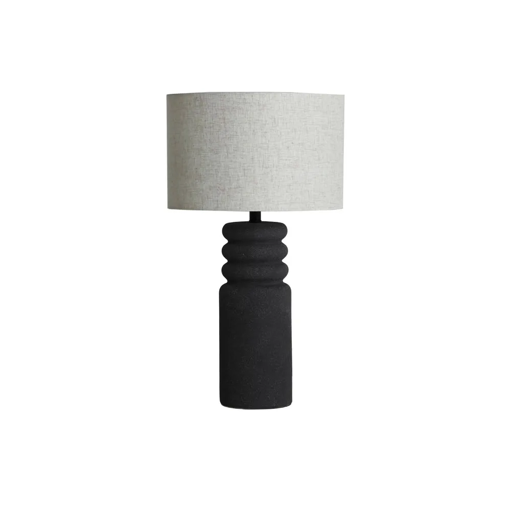La lámpara Rokko convierte la cerámica negra texturizada en un volumen casi escultórico, con una silueta orgánica que evoca paisajes naturales y transmite calma visual. Su base aporta carácter y profundidad, mientras que la pantalla de lino en tono natural suaviza la luz y equilibra el conjunto, creando una atmósfera serena y envolvente ideal para salones, dormitorios o proyectos con sensibilidad contemporánea.
