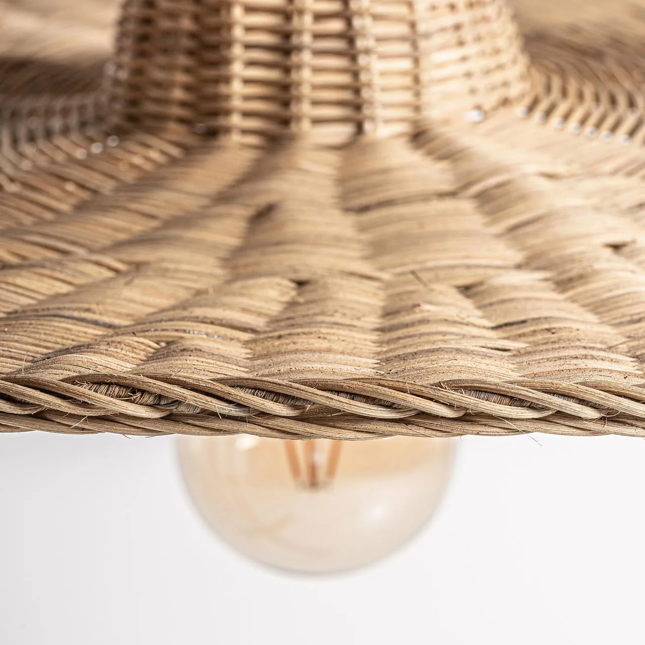 Lámpara de colgar uxmal de estilo boho fabricado en ratán en color marrón.