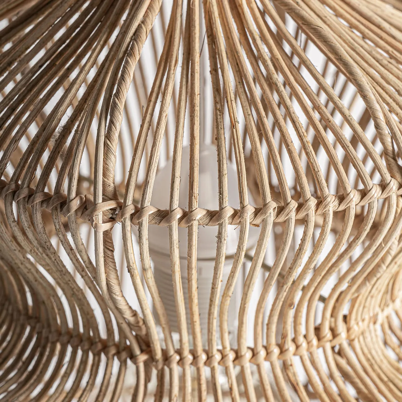 Lámpara de colgar de estilo boho fabricado en ratán en color marrón.