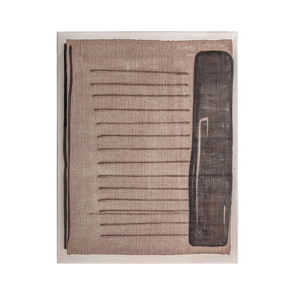 Lienzo Marcelo de estilo contemporáneo fabricado en lienzo en color beige combinado con madera tropical.