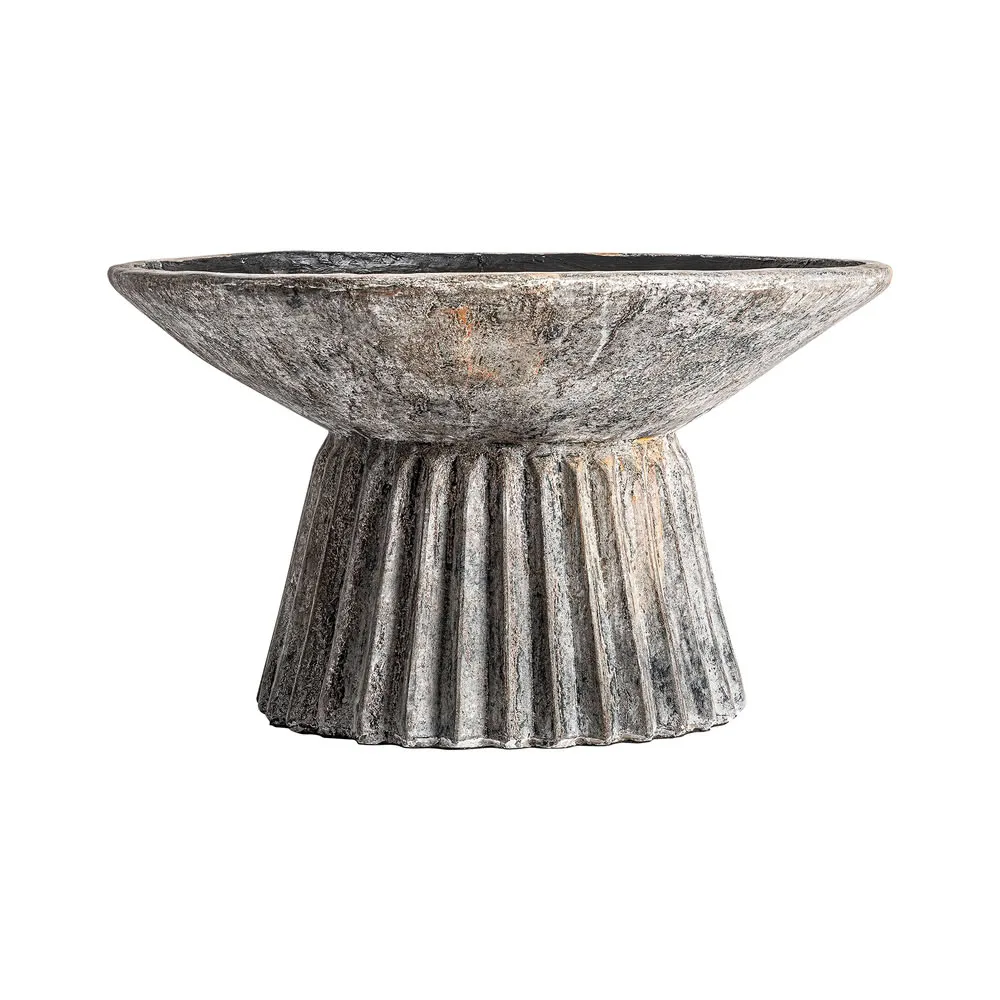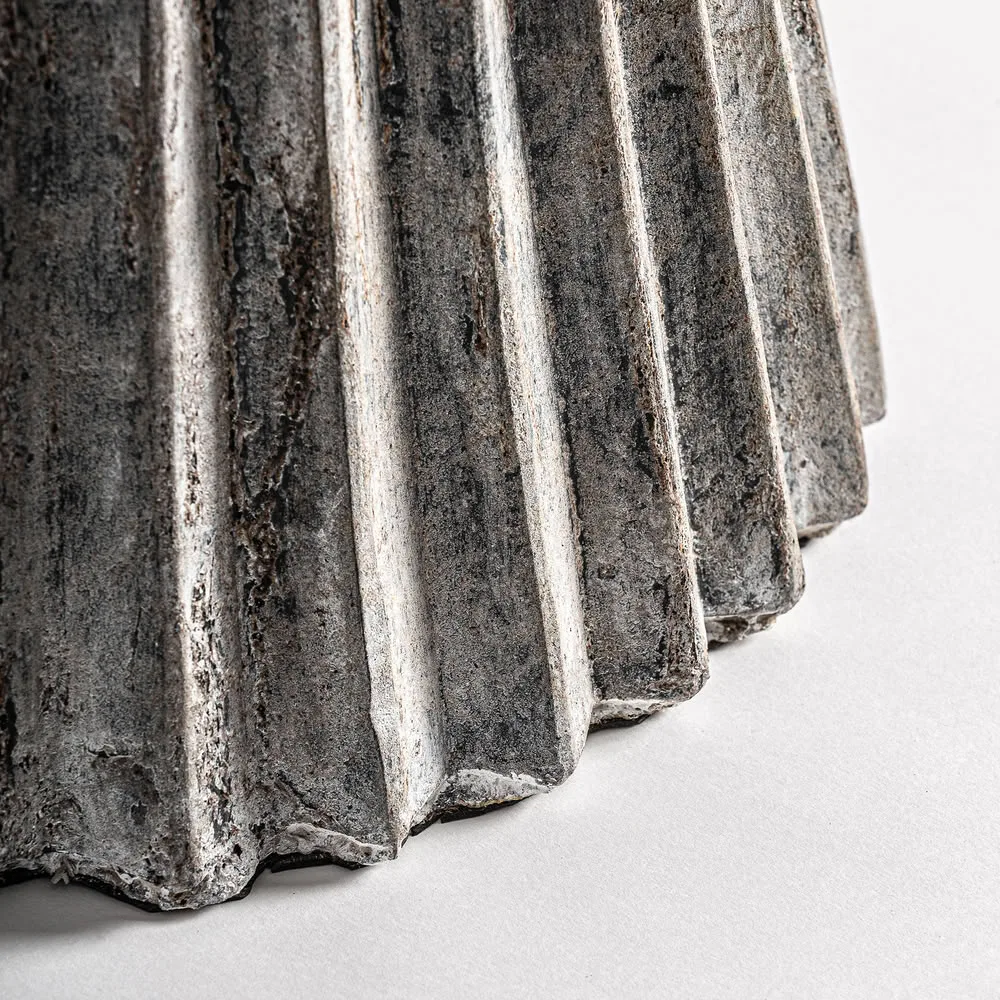 Macetero Plissé stone de estilo clásico fabricado en cemento en color tonos oscuros.
