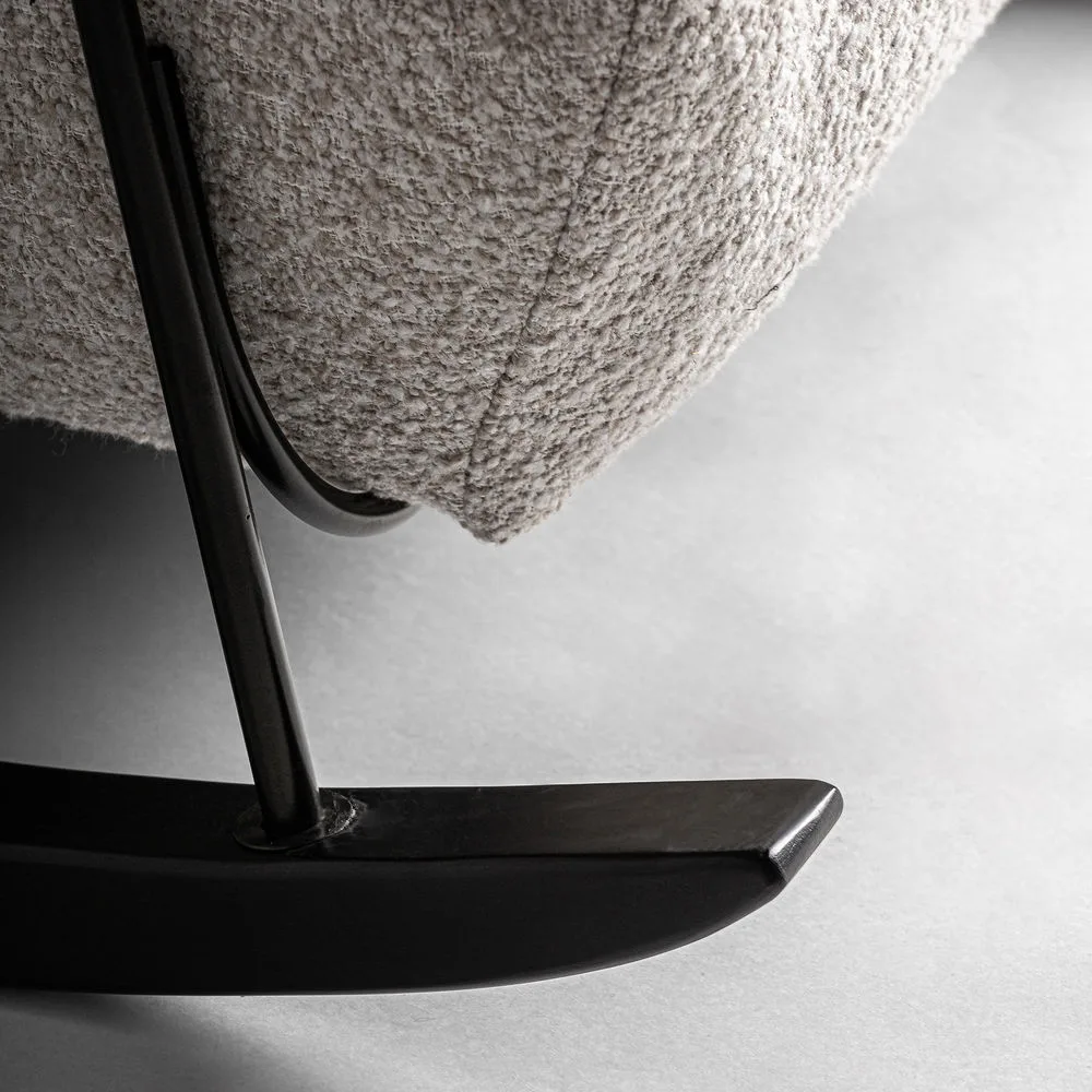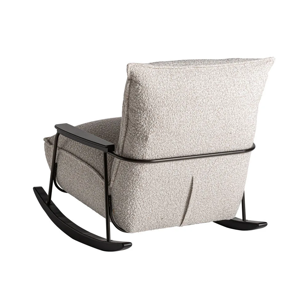 La mecedora Zwalm reinterpreta el diseño clásico con líneas limpias y un toque contemporáneo. Su asiento en beige jaspeado y su estructura de fresno negro crean una pieza equilibrada y acogedora.
