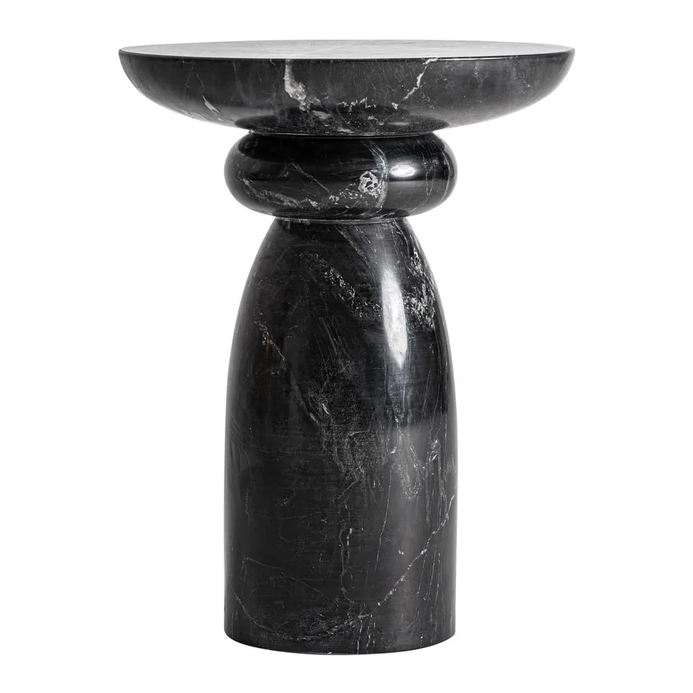 Mesa auxiliar Bleasby de estilo contemporáneo fabricado en mármol en color negro.