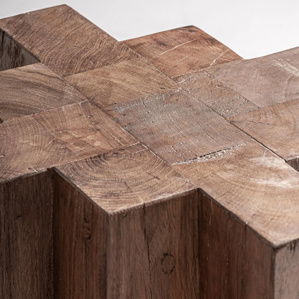 El taburete o mesa auxiliar Brutalist de VICALDESIGN, diseñado por Pep Gramage y de fabricación artesanal, es sólido, vertical y esencial. Su forma maciza recuerda las construcciones modulares del brutalismo arquitectónico.