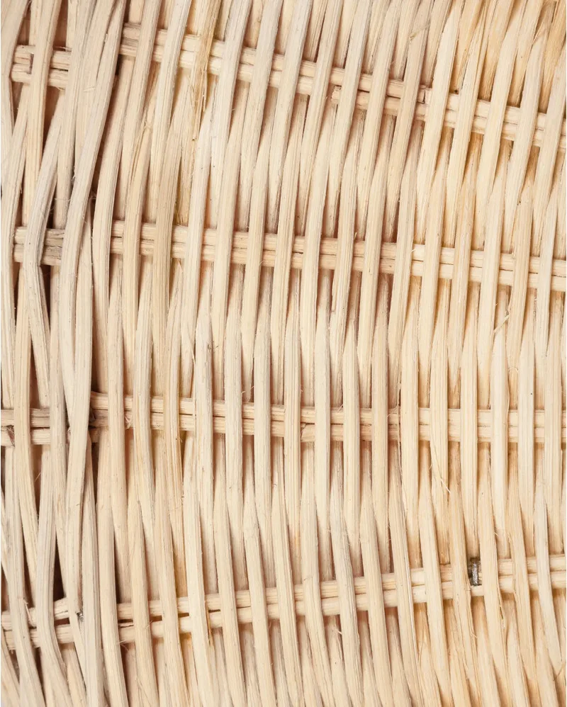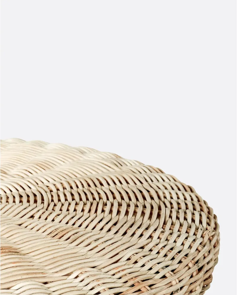 Mesa auxiliar de ratán trenzado en tono natural de Dareels, una pieza ligera y escultórica que aporta movimiento y calidez. Sus dimensiones —45 x 45 x 48 cm— la hacen perfecta como apoyo en salones o rincones relajados.