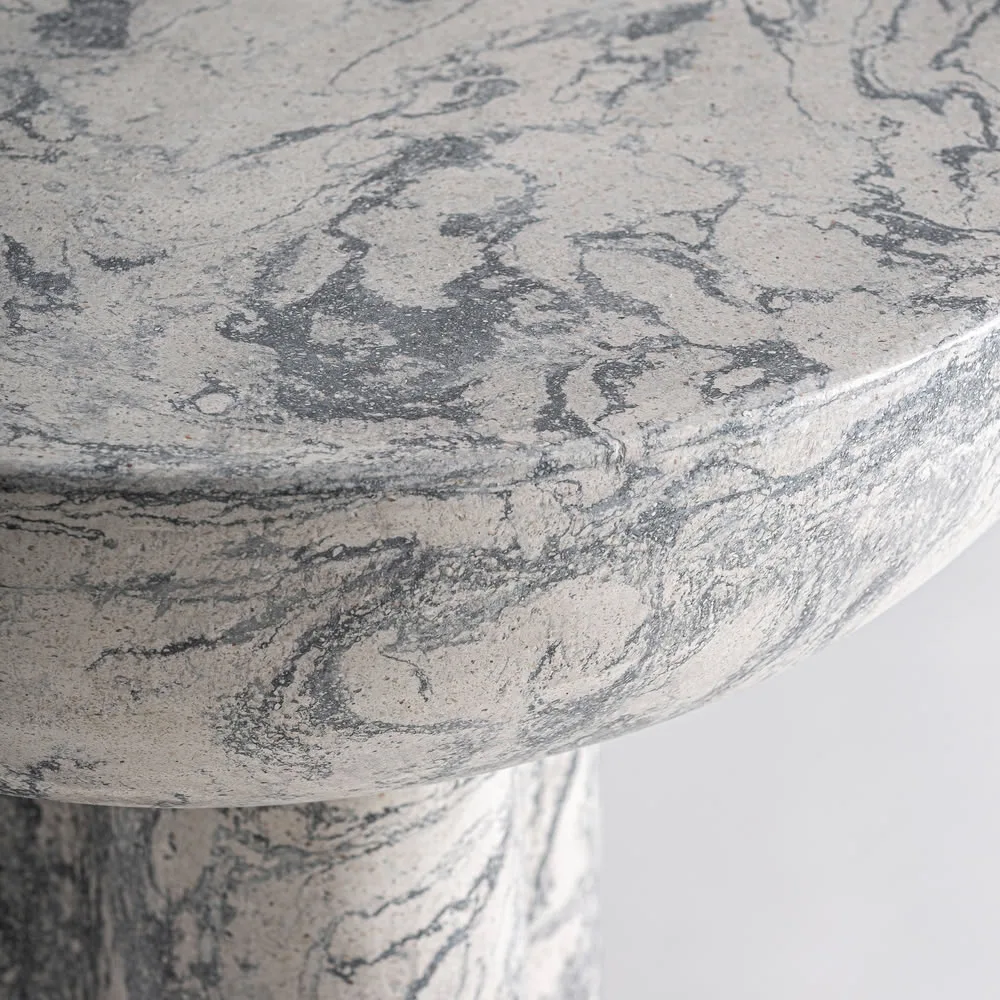 Mesa auxiliar Holtum de estilo contemporáneo fabricado en terrazo en color gris.