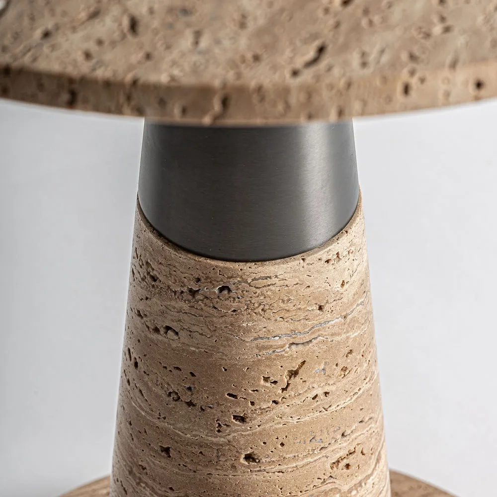 Mesa auxiliar Rust de estilo art deco fabricado en mármol en color beige combinado con hierro en color oro con acabado bronce.
