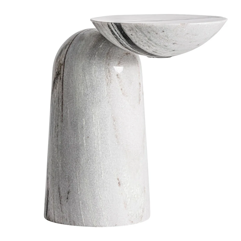 Mesa auxiliar Scothern de estilo contemporáneo fabricado en mármol en color blanco.